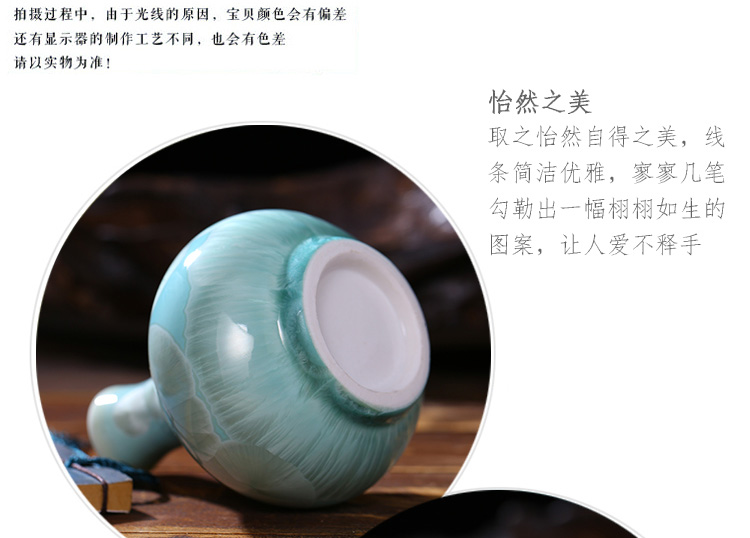 荷葉花器(小號哥窯梅子青冰裂)龍泉青瓷花瓶擺件客廳插花陶瓷水培容器綠蘿現代簡約家居創意裝飾