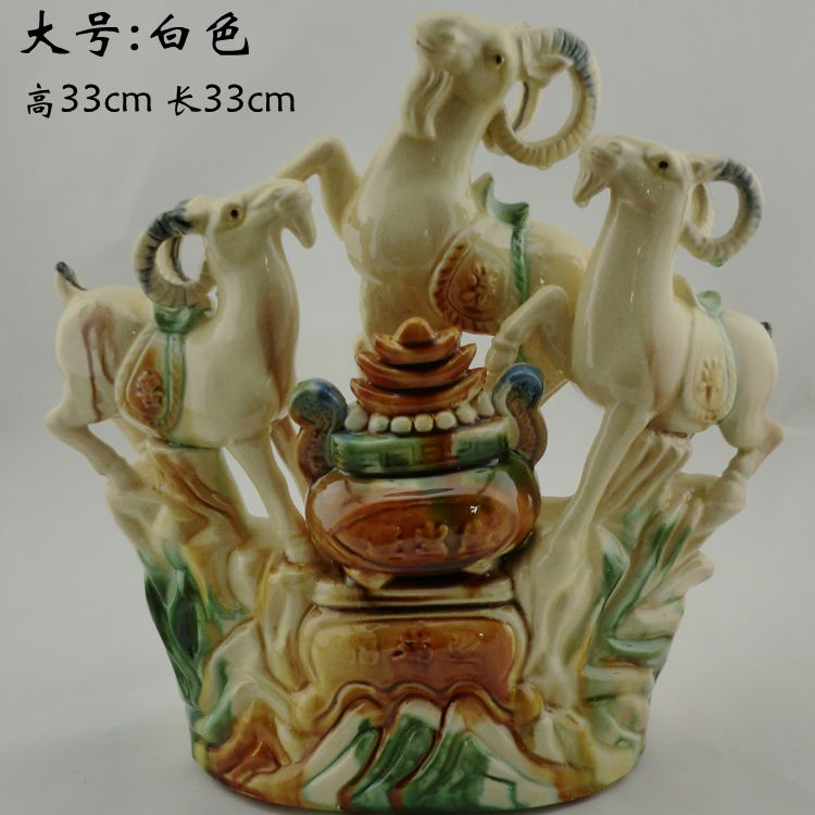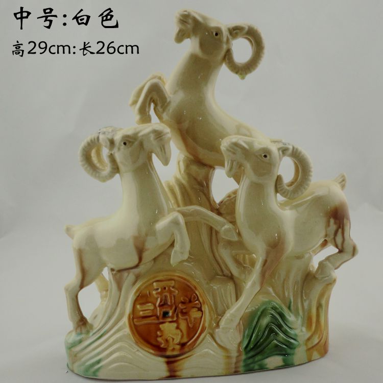 中三羊白陶瓷羊擺件唐三彩羊陶瓷三羊開泰擺件羊擺件招財金錢落地羊擺件