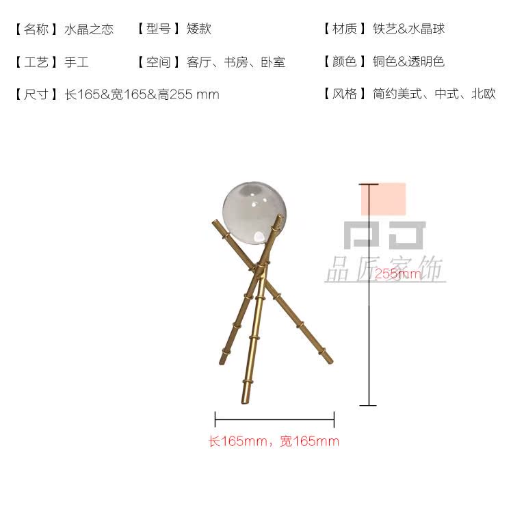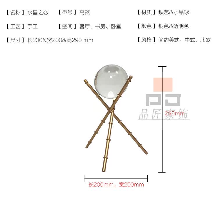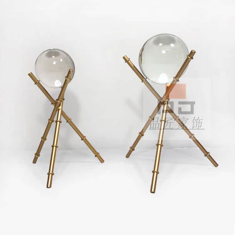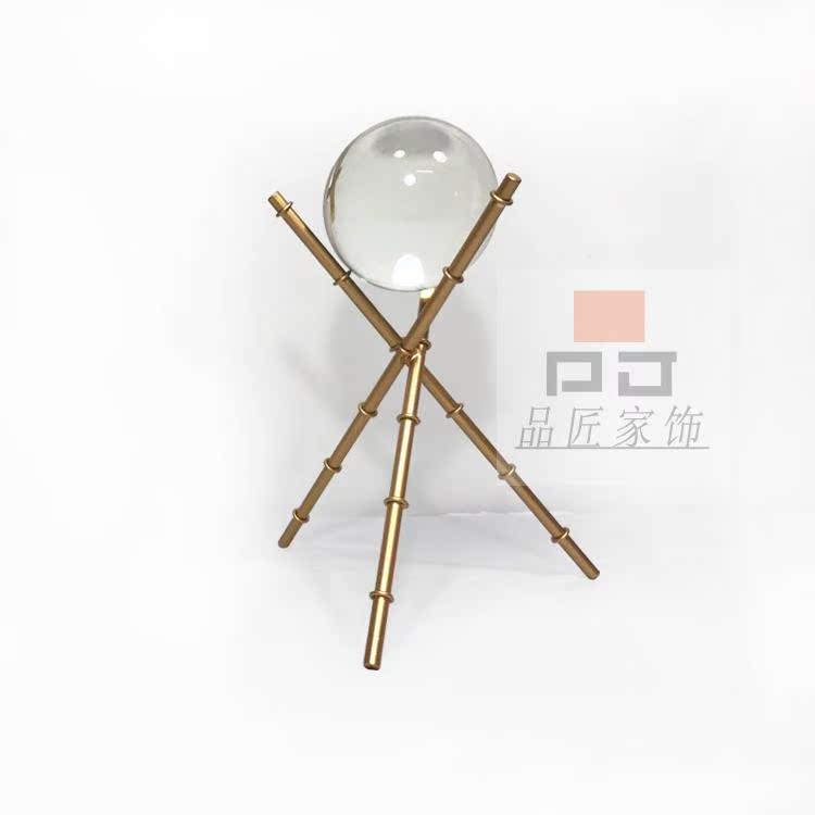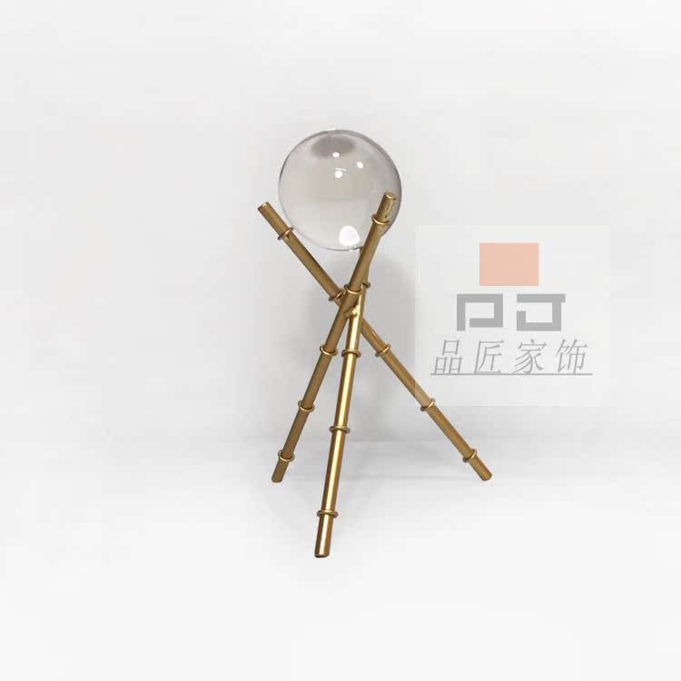 大號現代小美式歐式軟裝樣板房展示臺桌面高檔透明水晶三角架子小擺件