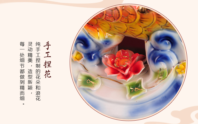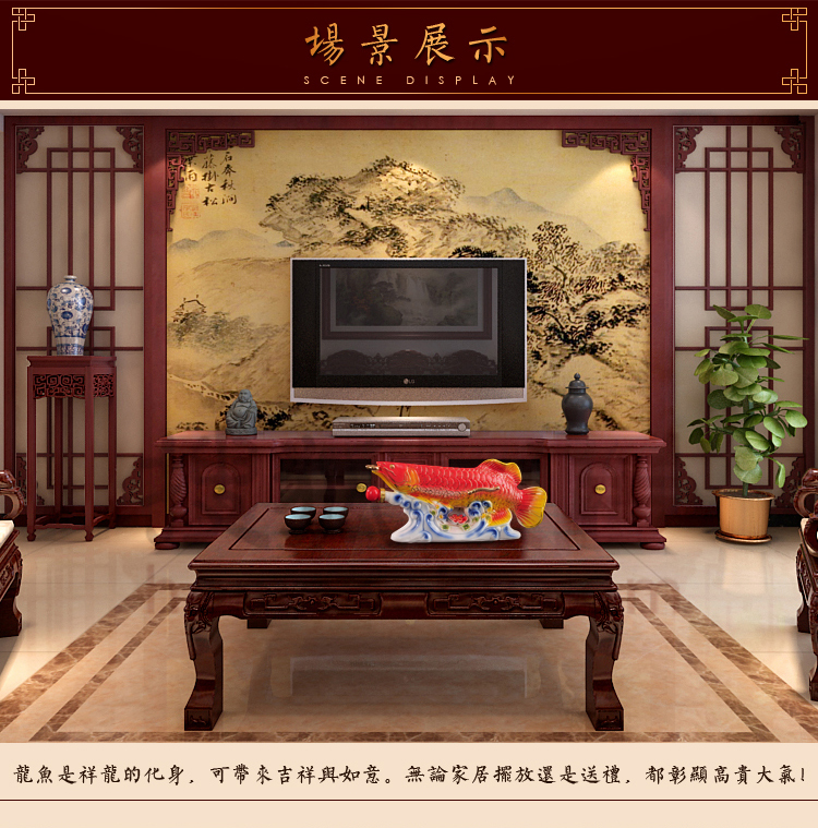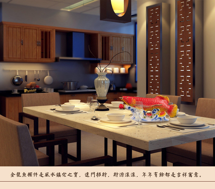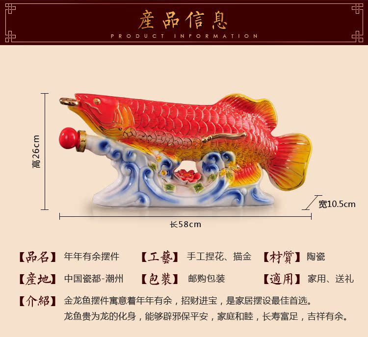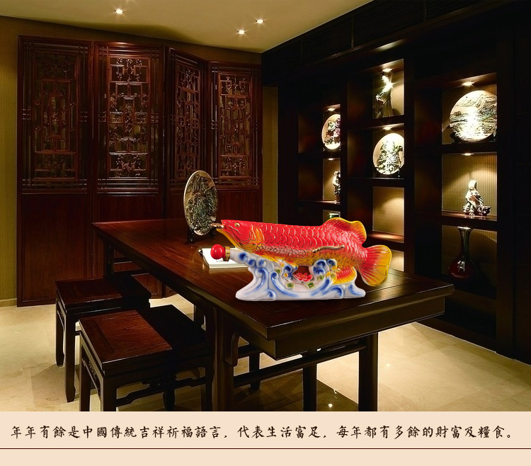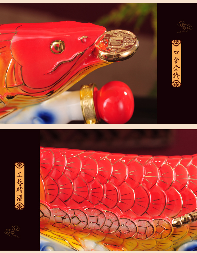 大號招財金龍魚擺件琺瑯陶瓷年年有余工藝品 客廳玄關裝飾品擺設