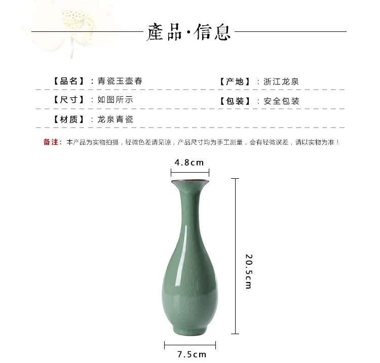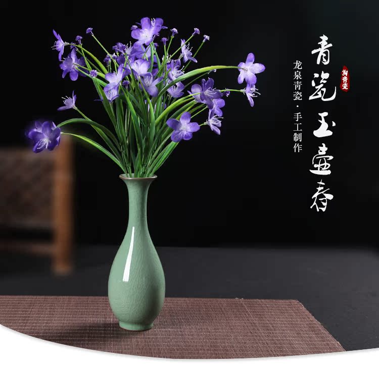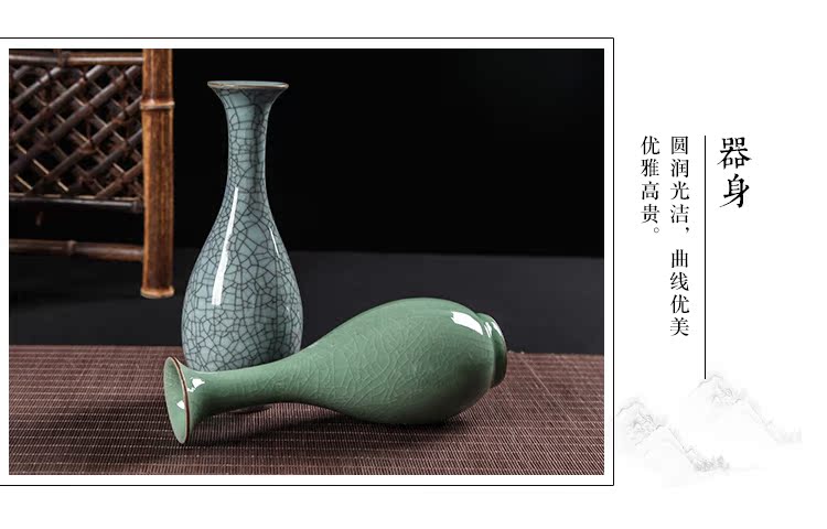 大號玉壺春哥梅青瓷水培陶瓷花瓶擺件青瓷創意時尚插花干花器餐桌客廳家居裝飾品