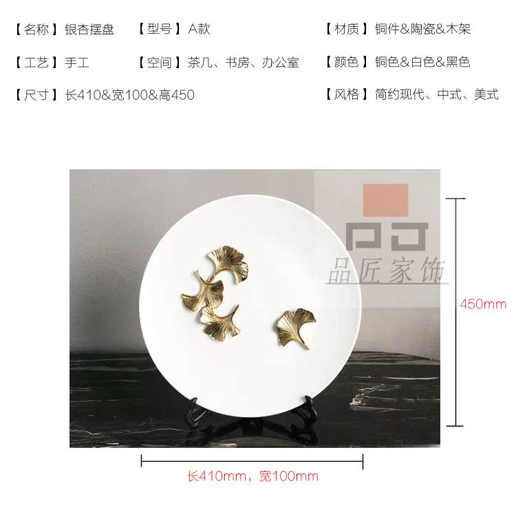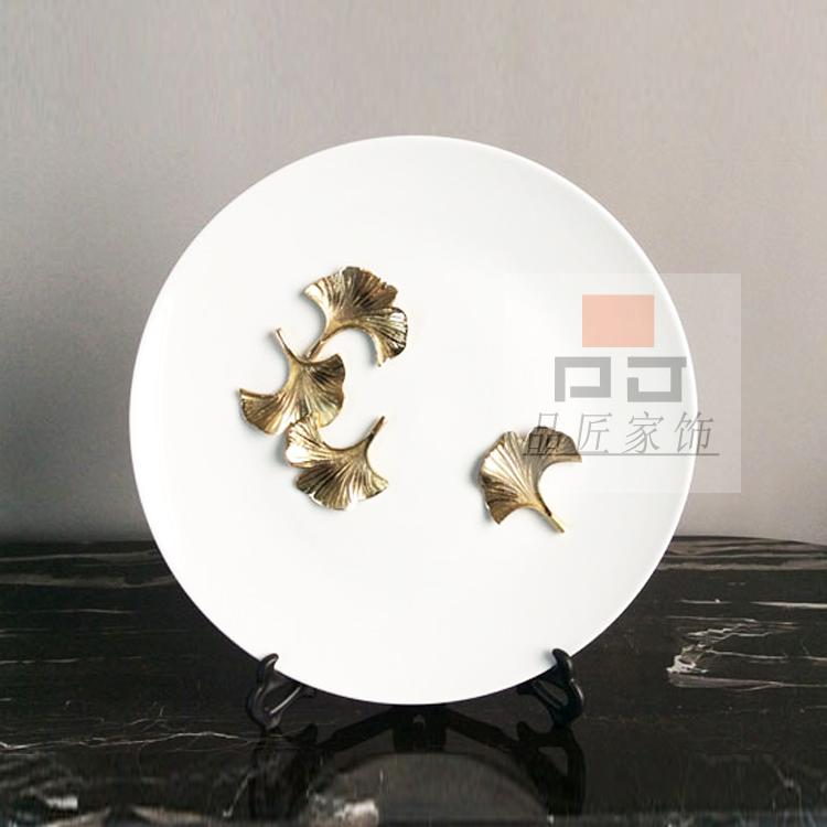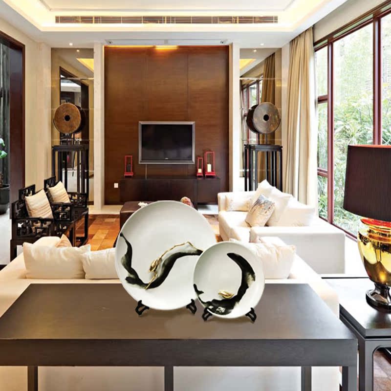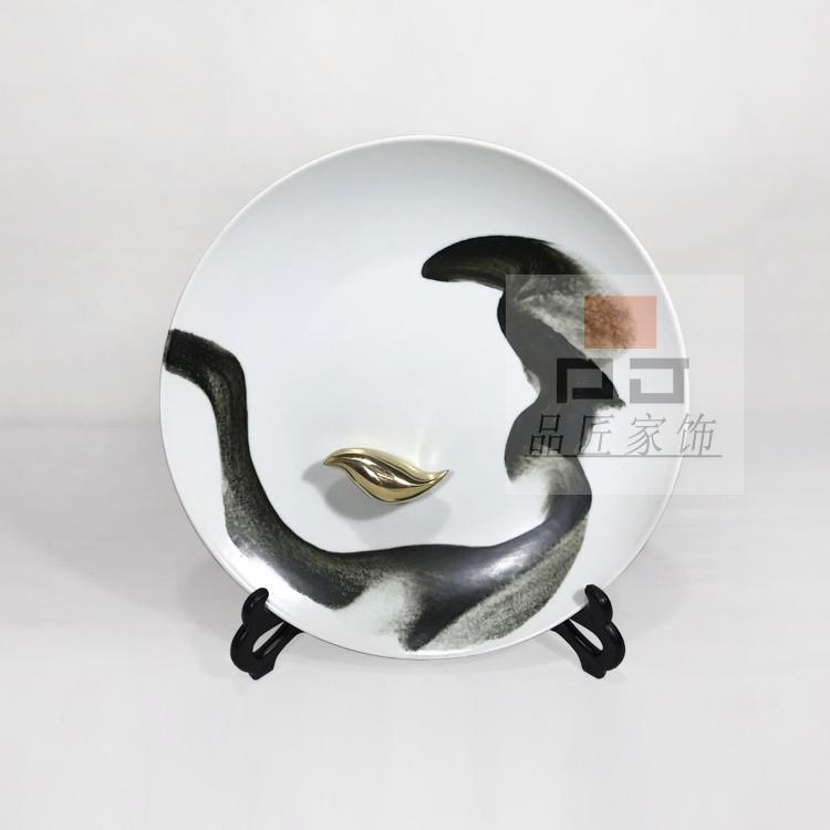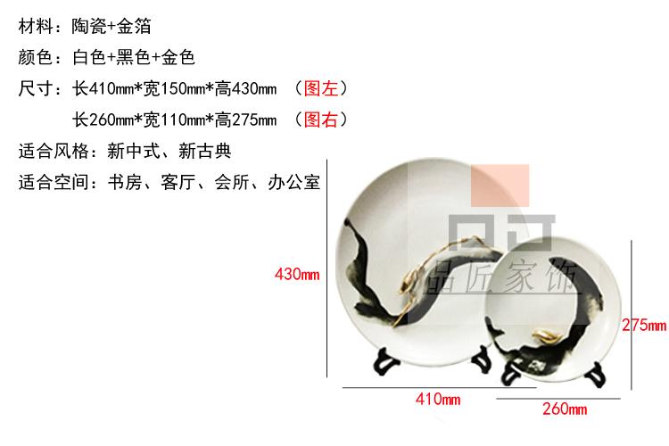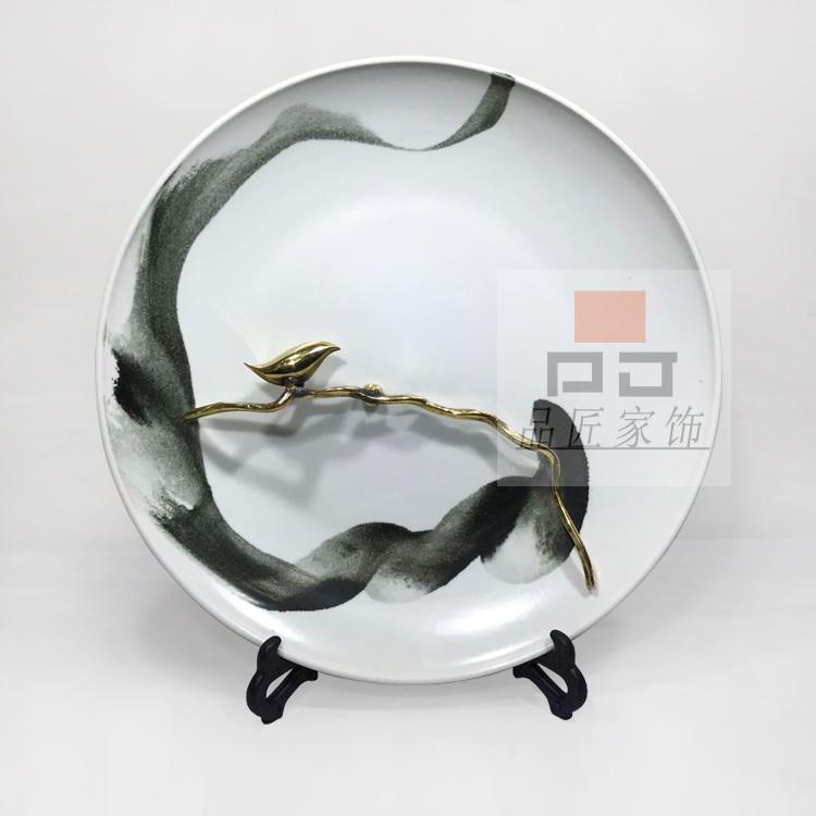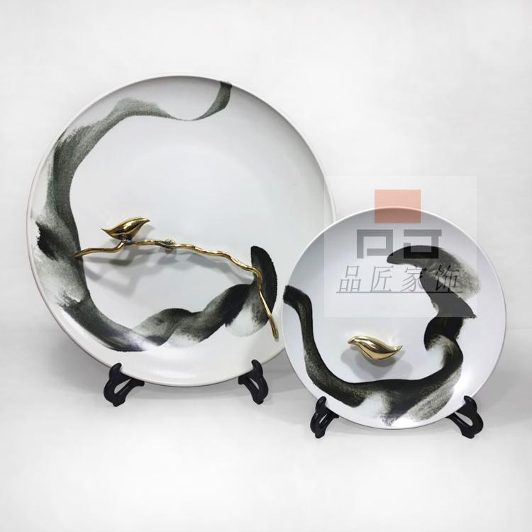 一筆墨小號新中式軟裝樣板房辦公實木家具電視柜玄關陶瓷筆一墨風水銅鳥擺盤