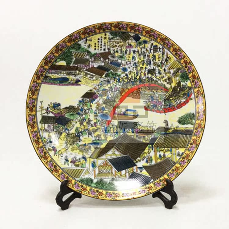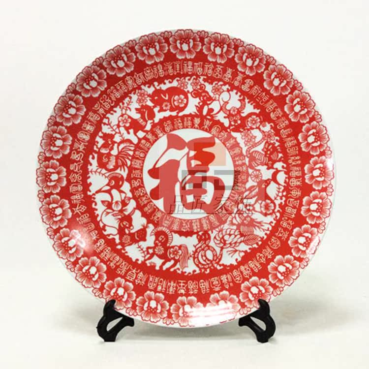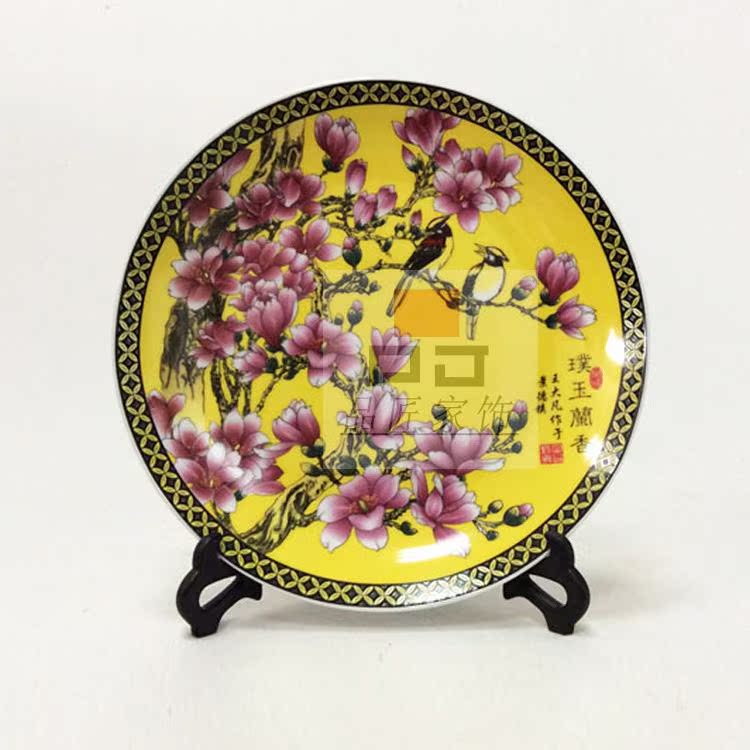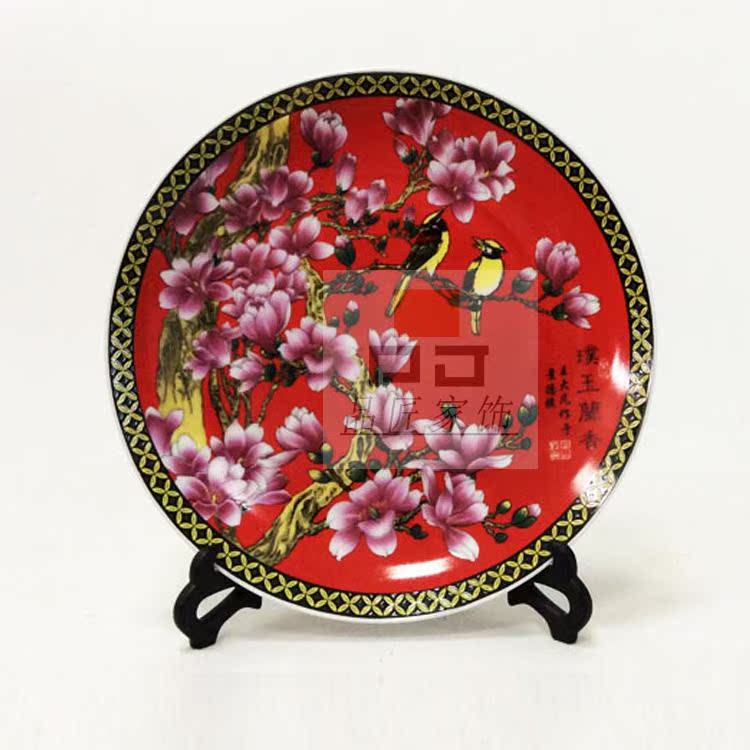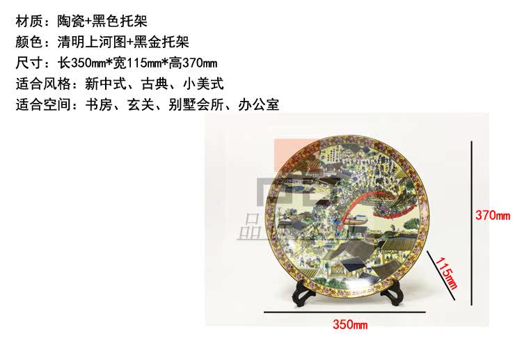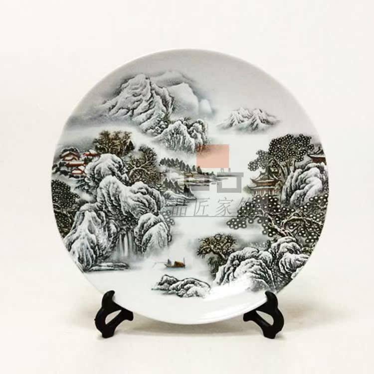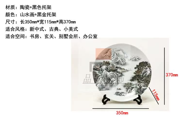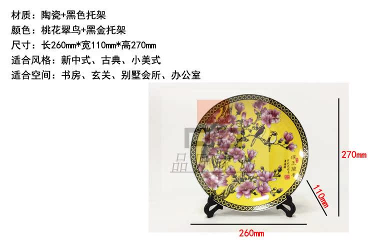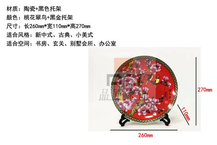 D款古典中式軟裝飾品樣板房客廳櫥窗開業山水花紋裝飾碟風水擺盤
