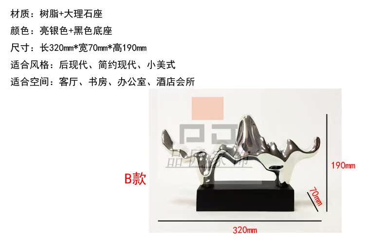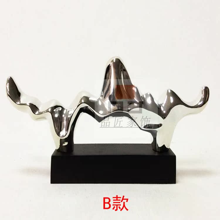 B款后現代小美式家居軟裝送禮樣板房展示專賣店銀色山峰藝術擺件