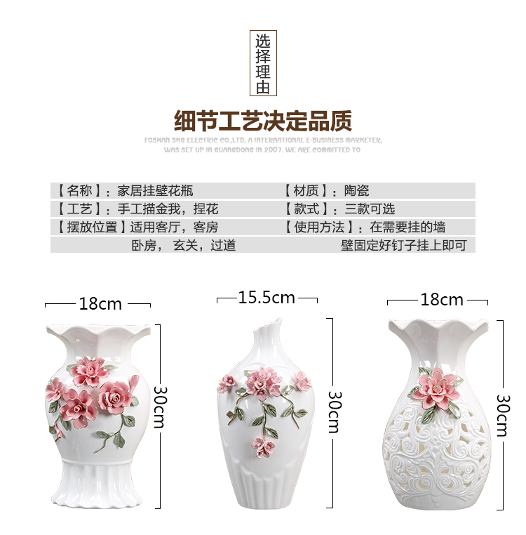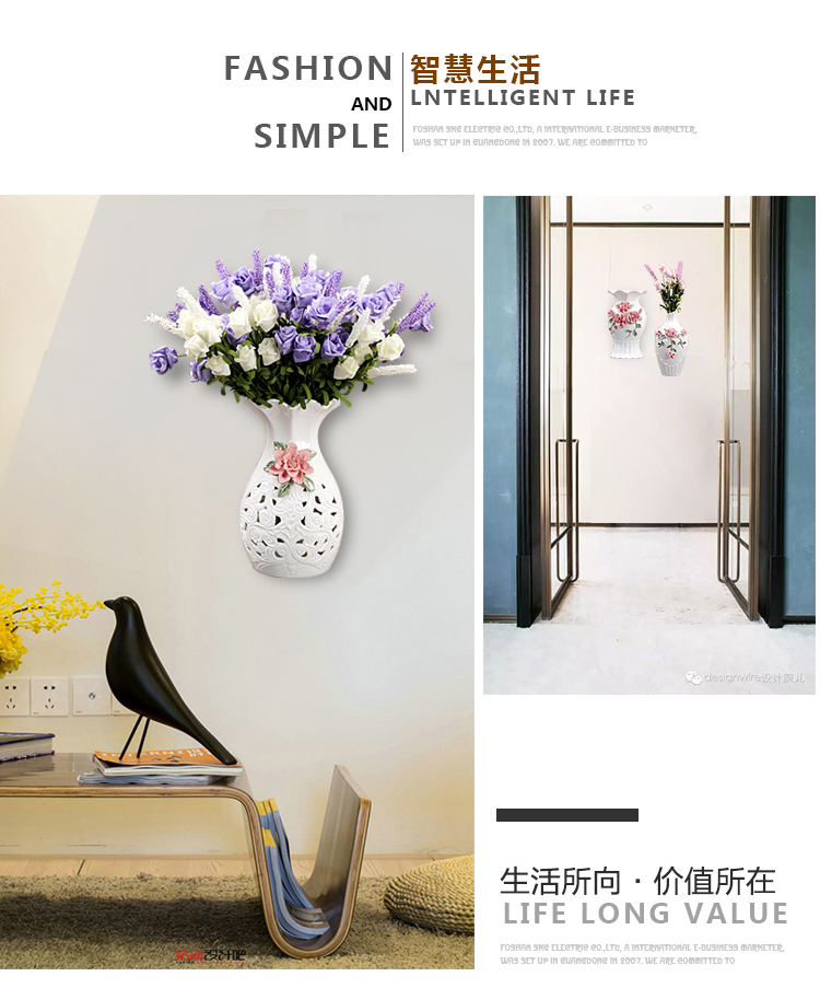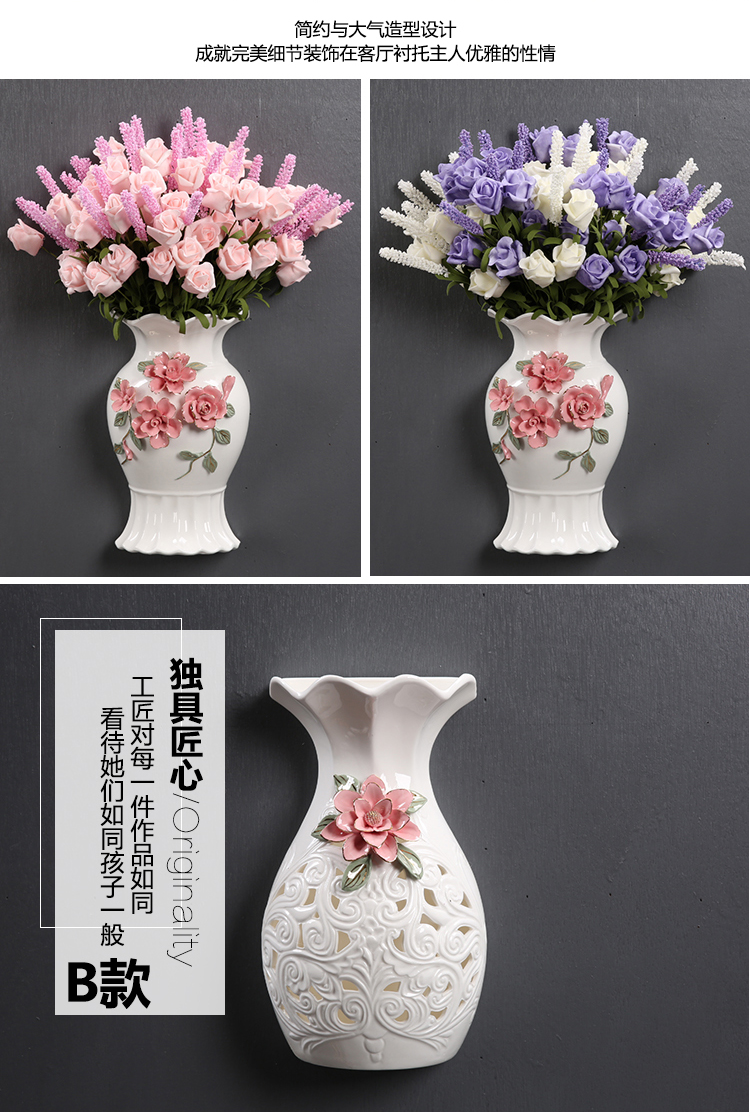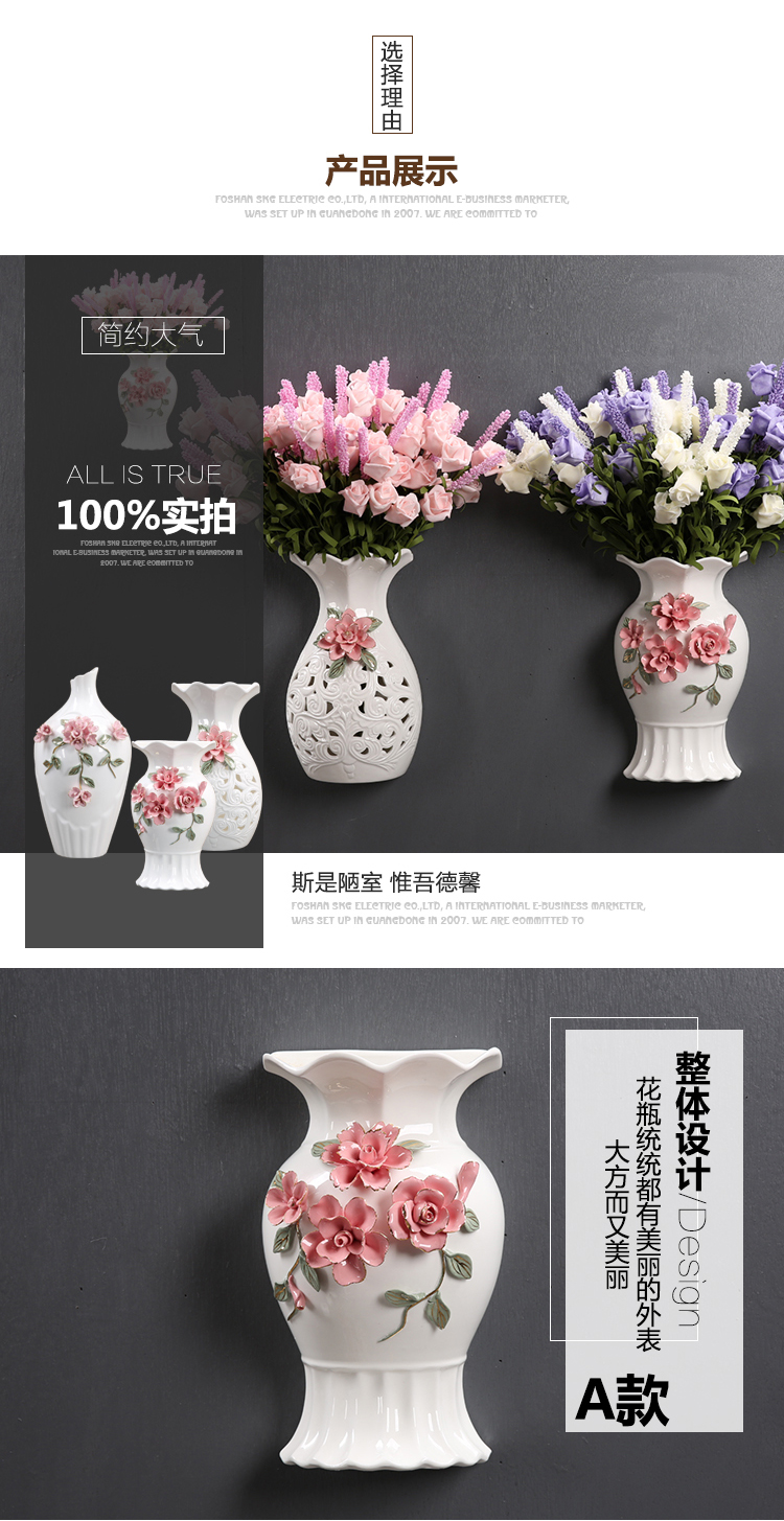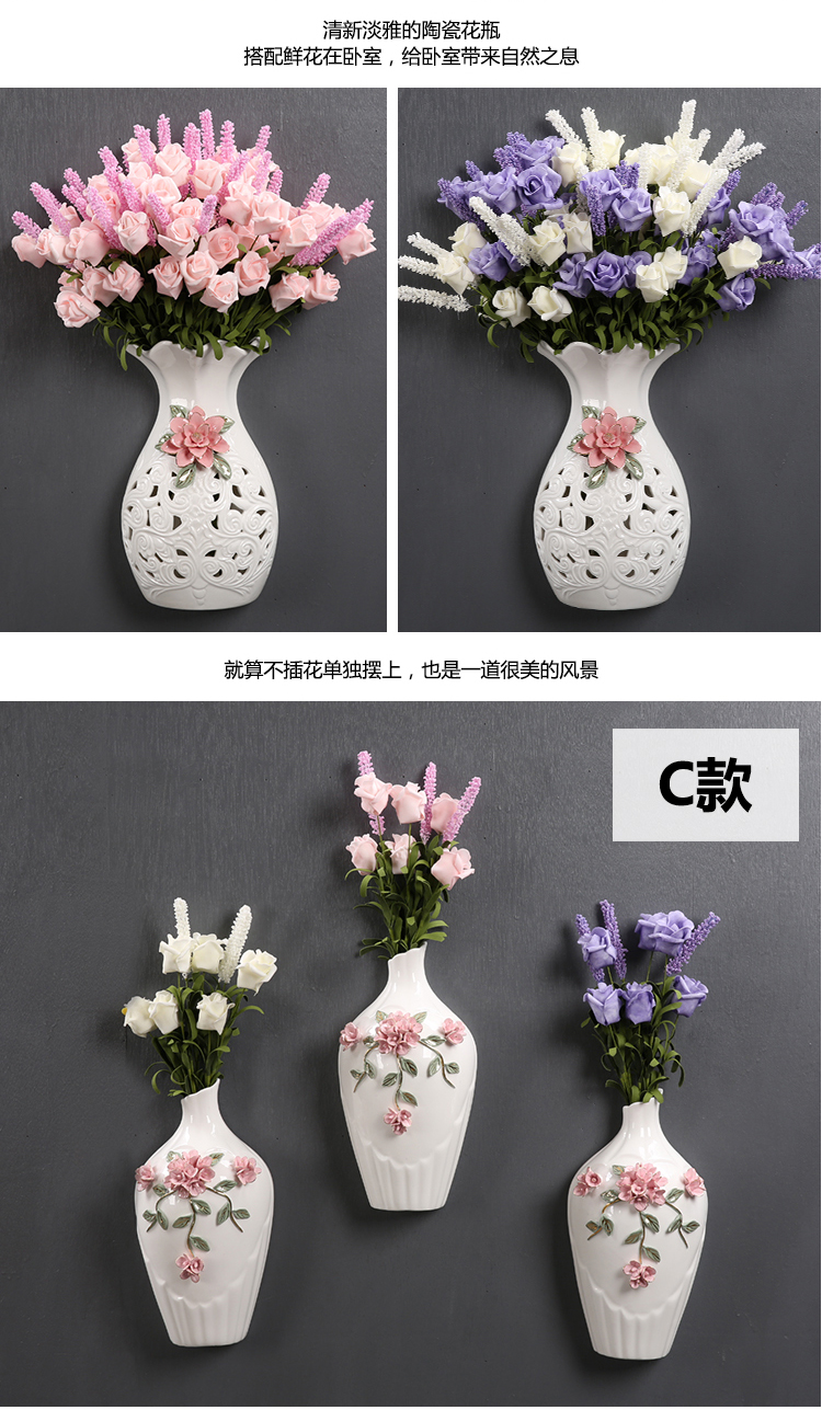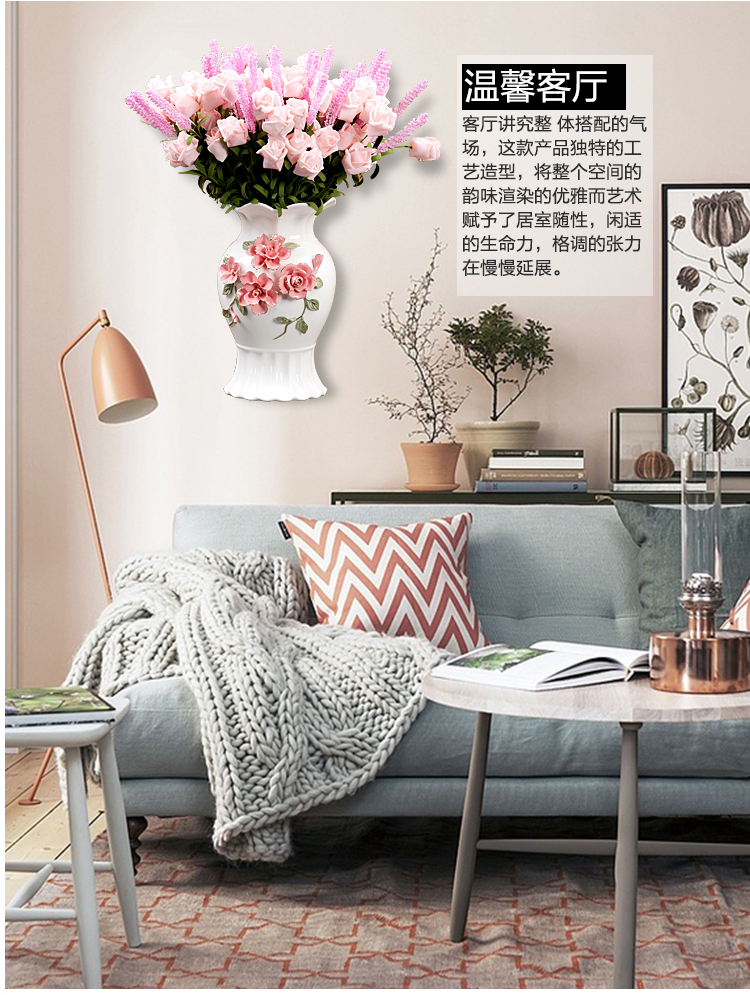 A款歐式陶瓷花瓶墻面墻上裝飾品 創意家居客廳餐廳壁飾壁掛墻飾壁瓶