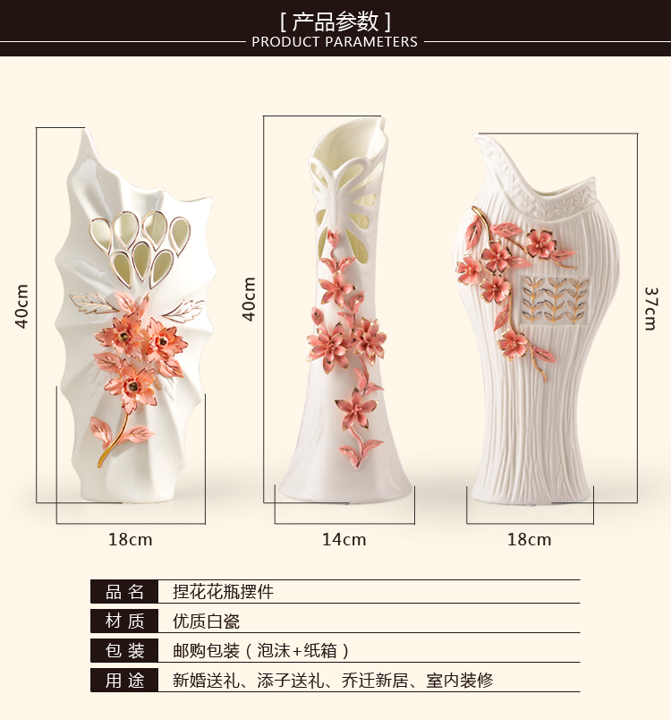 A款陶瓷花瓶三件套客廳家居裝飾品玄關擺件歐式創意花器結婚喬遷禮物
