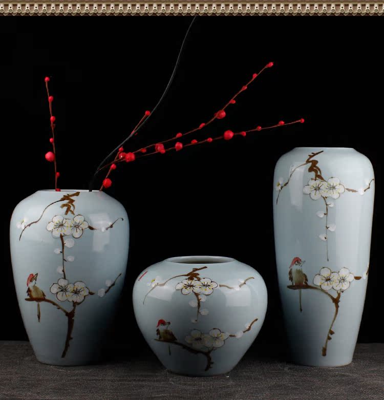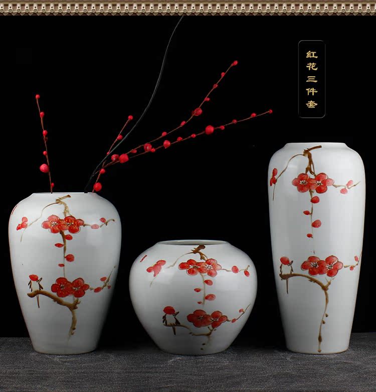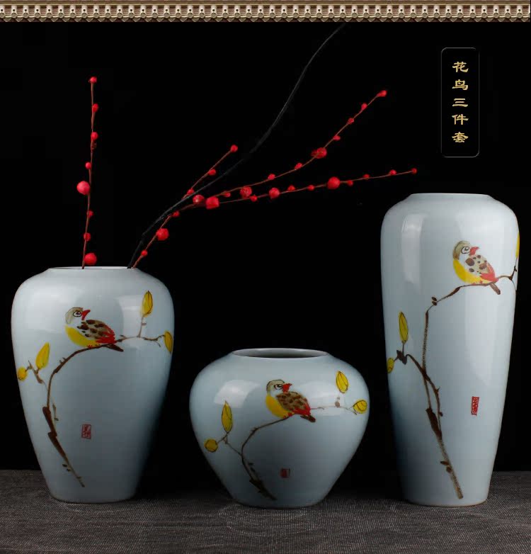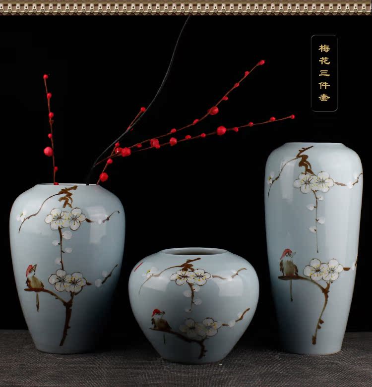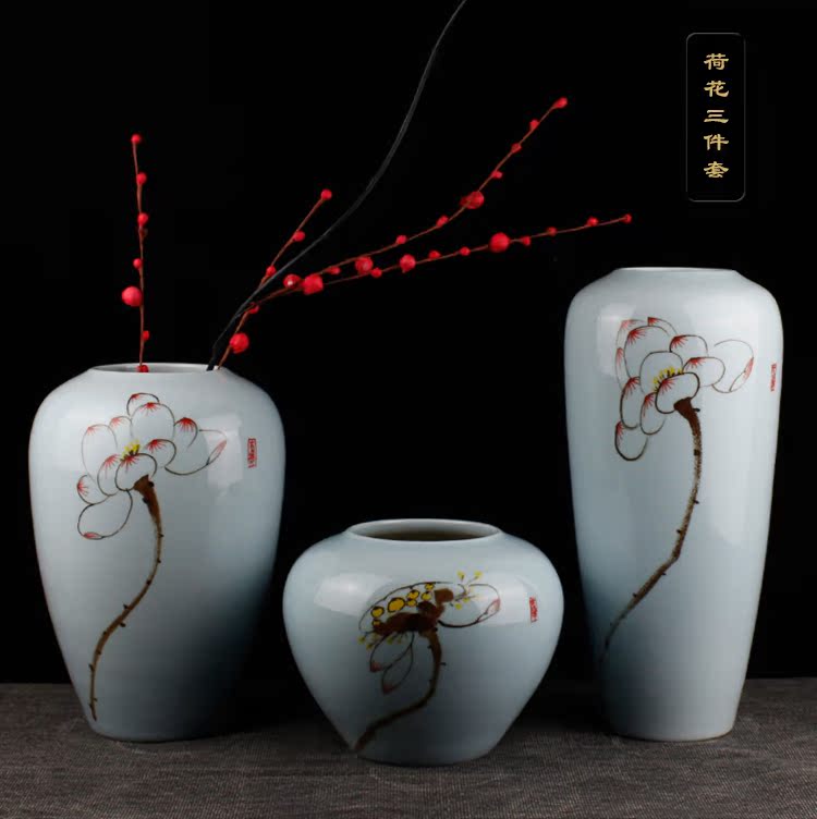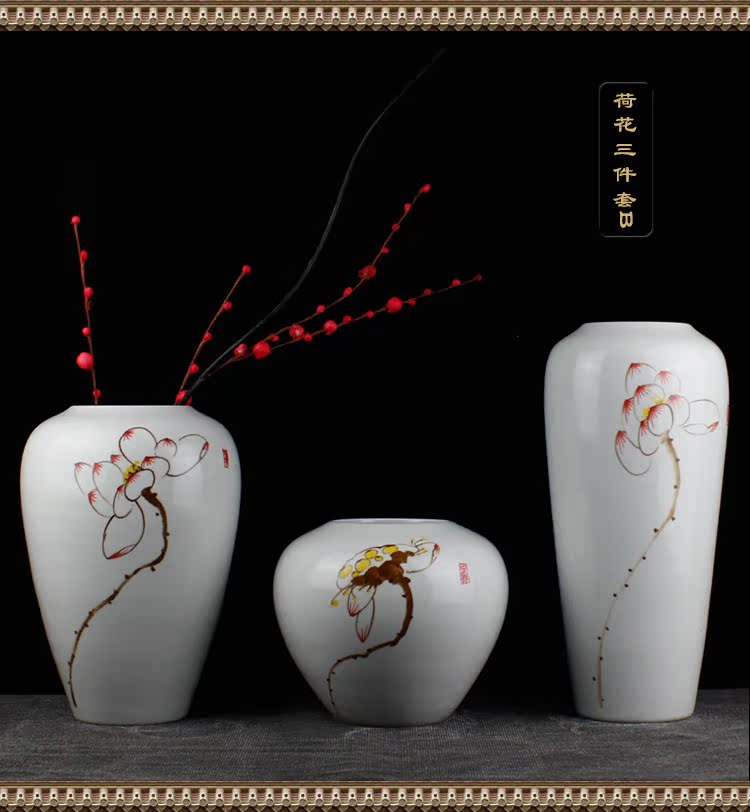 A款荷花三件套景德鎮陶瓷器 現代中式居家三件套插花花瓶 居家裝飾工藝品擺件