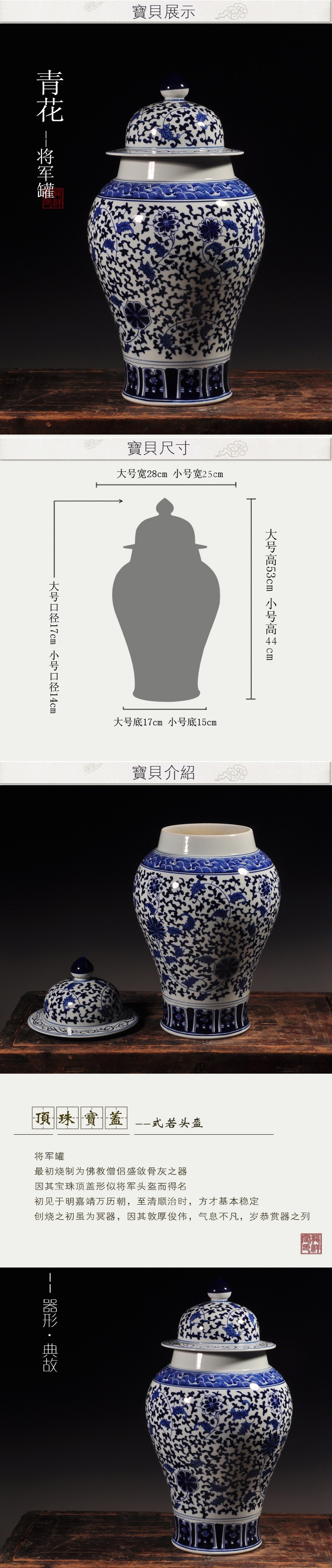 002大號景德鎮花瓶陶瓷器擺件 仿古手工青花瓷將軍罐蓋罐 客廳家居裝飾品