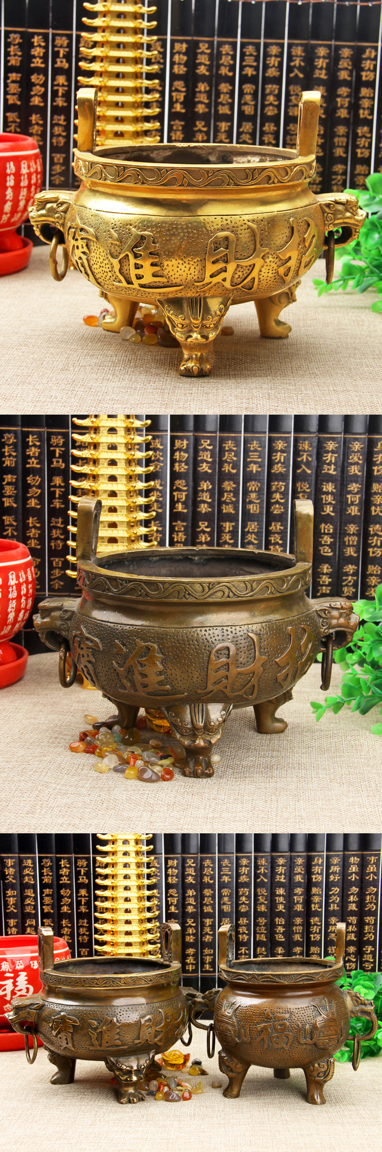 高9.5厘米福字香爐 仿古款風水純銅香爐擺件有求必應雙耳大小號薰香爐財神檀香線香爐
