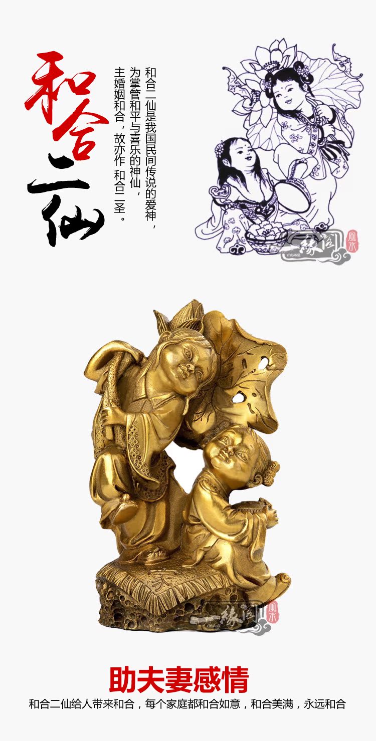 精品大號一緣閣 開光純銅和合二仙擺件 回心轉意和合助姻緣促感情防小三