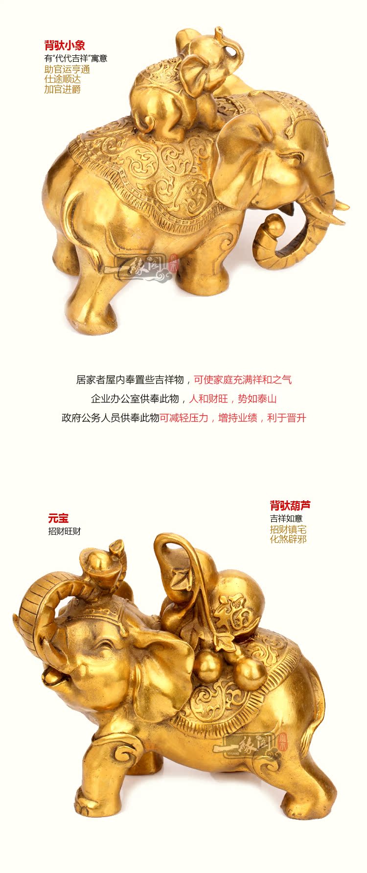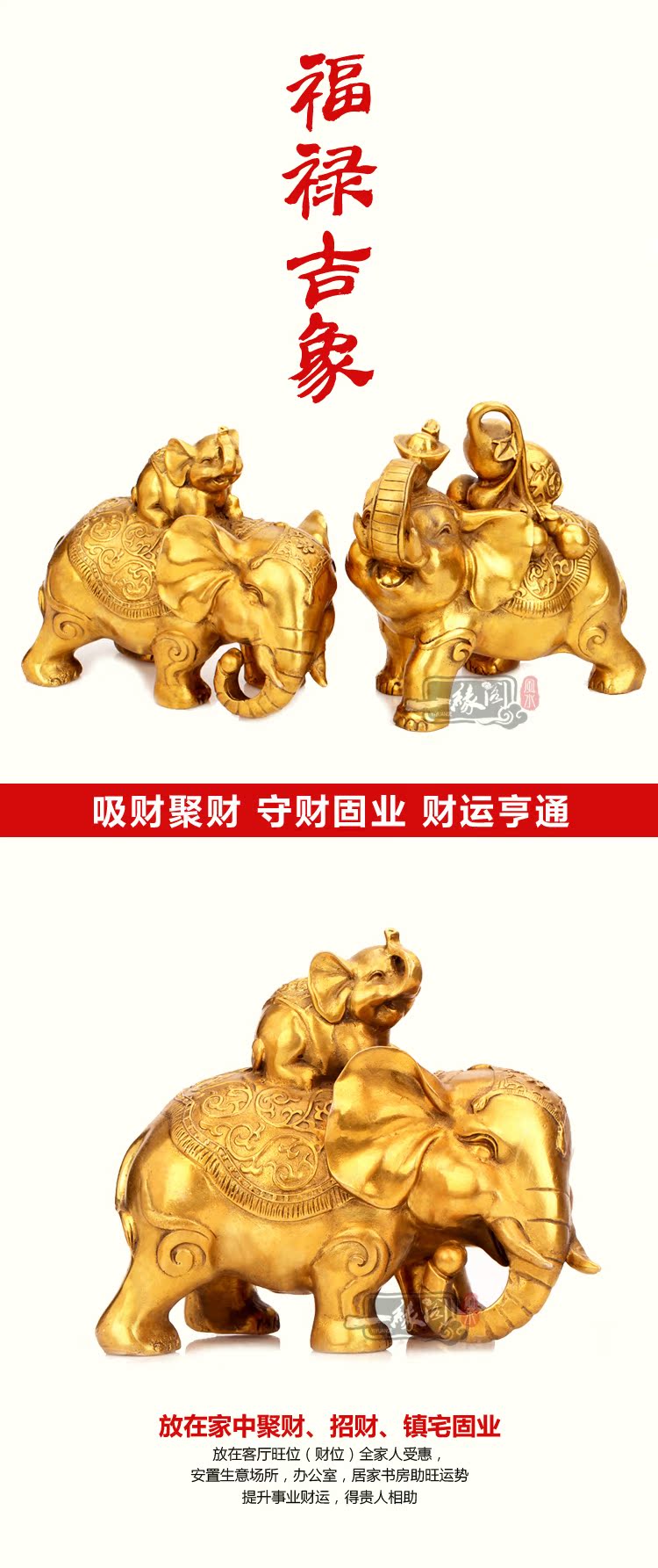 福祿母子象一對開光銅大象擺件吸財象一對吉象如意福祿象葫蘆大象工藝品開業禮品