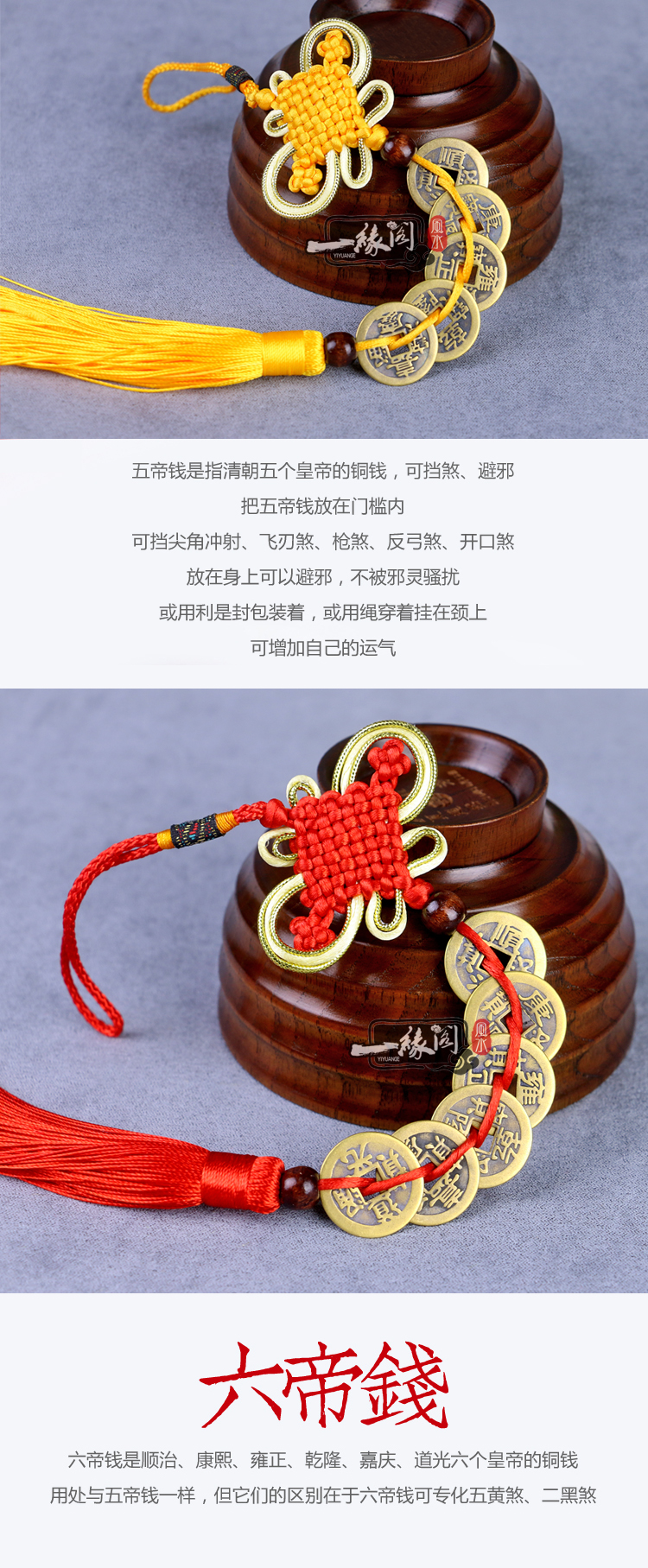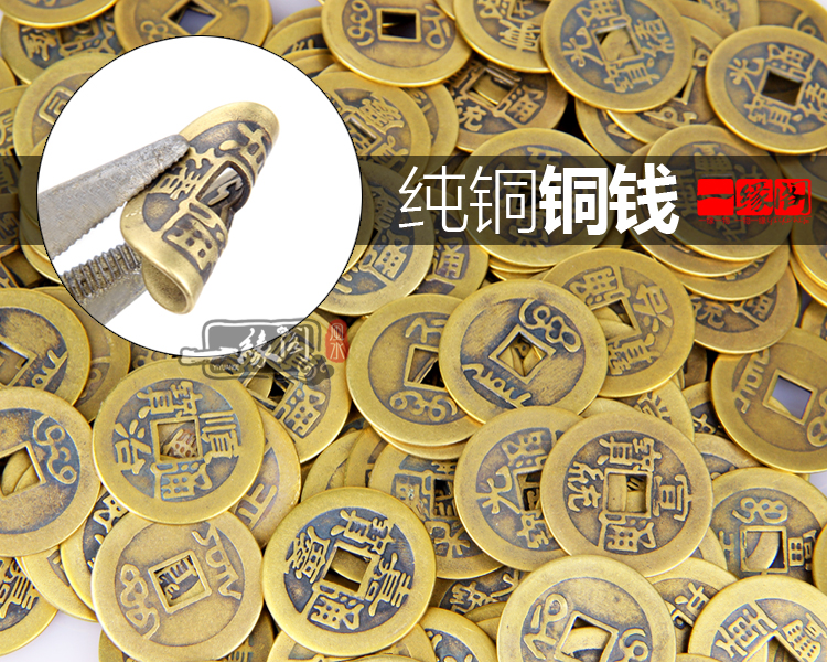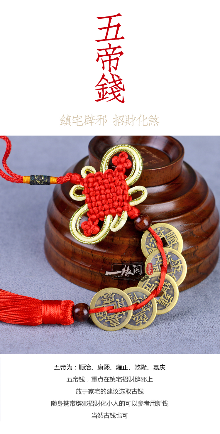黃色五帝錢開光純銅真品五帝錢掛件六帝銅錢擺件 風水古幣鎮宅招財化煞辟邪