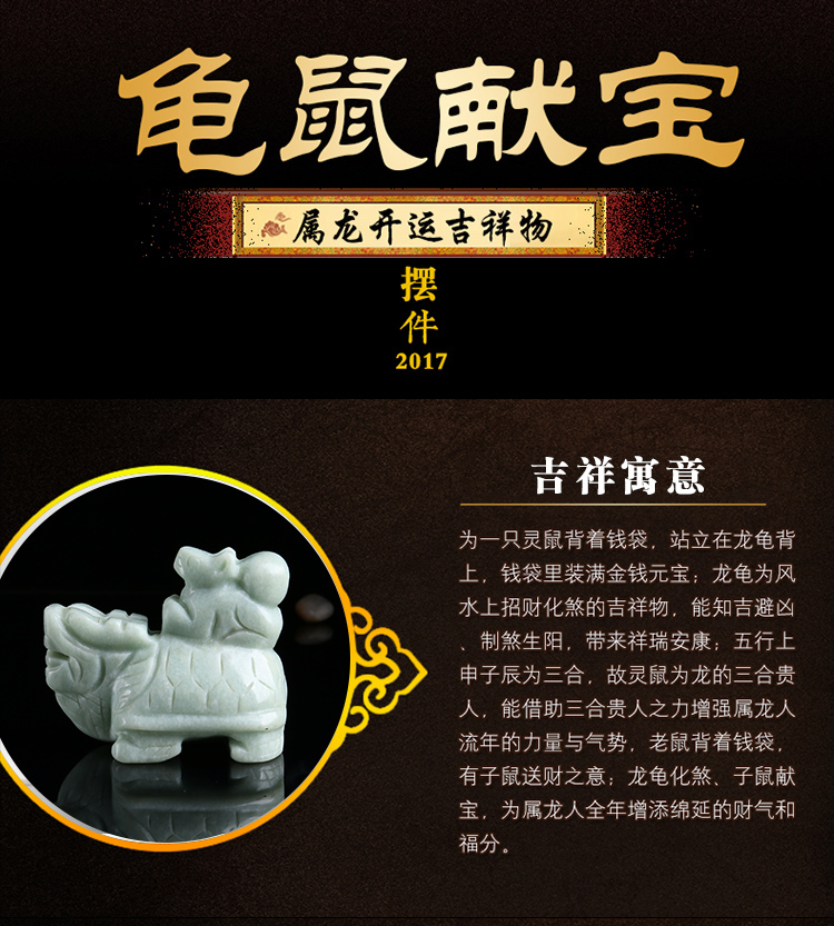 開光淘運閣2017年生肖龍吉祥物龜鼠獻寶擺件 石雕擺件 禮品