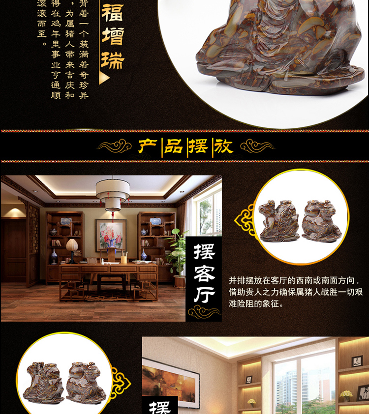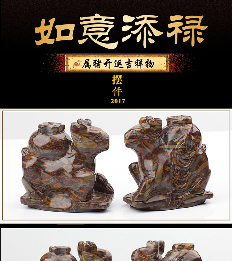 開光淘運閣2017年生肖豬吉祥物如意添祿石雕擺件開運風水家居禮物