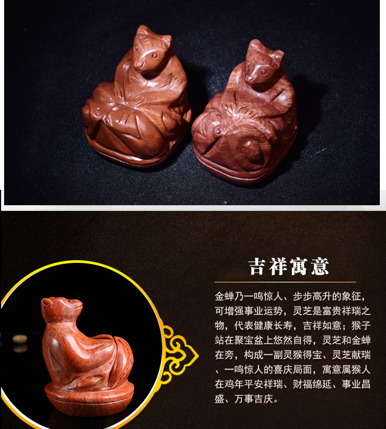 開光淘運閣2017年生肖猴吉祥物猴蟬爭鳴擺件 石雕擺件 禮品