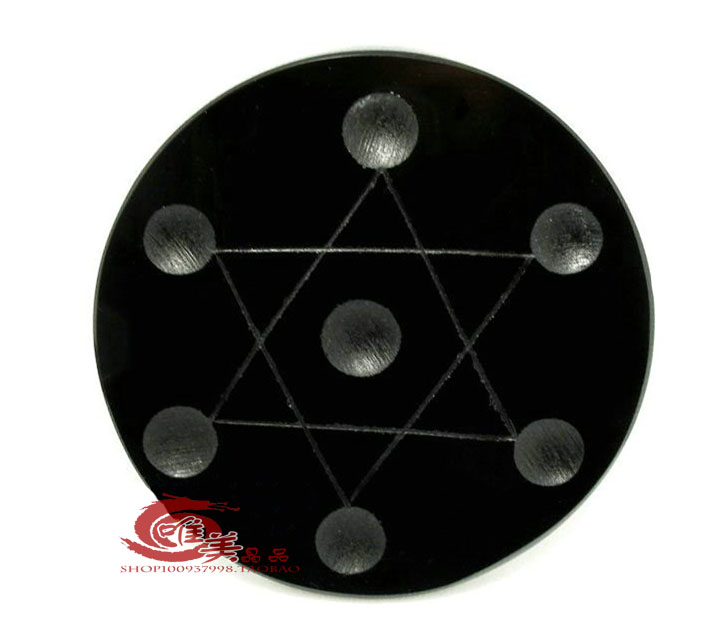 材質:純天然黑曜石 尺寸:小號:{底盤直徑8厘米中間球26mm邊球20mm}左右 中號:{底盤直徑10厘米中間球28mm邊球21mm}左右 大號:{底盤直徑12厘米中間球40mm邊球30mm}左右 特大號:{底盤直徑15厘米中間球40mm邊球35mm}左右 超大號:{底盤直徑15厘米中間球50mm邊球40mm}左右 七星陣的基礎是三角星陣法,由宇宙能量的符號,兩組等邊三角形,以相反方向交疊在一起,形成六角星。對猶太民族具有極深的宗教意義,也被稱為大衛之星或所羅門之璽,是人類靈性與宇宙結合的象征。以此圖形為基準,在六個角和中心點擺上晶株或水晶球,叫七星陣。由兩組三角形成的大衛星,下層的三角代表肉體,人的生命活力,和下三輪太陽,海底,臍輪,上層三角象征精神,人的靈性,和上三輪喉,眉,頂輪,兩個三角交疊,是心輪所在。七星陣每個三角形邊長是7的倍數,中間的晶球是主干,體積比周圍六顆小球的要大。七顆球是同一種水晶,效果最好。 由于黑曜石的精純能量,是屬于吸納性能量,建議黑曜石需佩帶右手為佳,所有的水晶來說幾乎全部都是佩帶左手,惟獨黑曜石,是佩帶右手,因為根據古中國氣法,一般都是左進右出為原則,所以,左手都是進氣而右手是排氣,右手佩帶黑曜石有助于將自身的負性能量給吸納掉,包括比較不干凈的東西或者病氣,甚至是比較不好的運氣都可以,而且更有效的避邪。 水晶七星陣的擺法 水晶具有強大的能量,水晶七星陣,其能量就加倍的強大! 七星陣能凝聚能量,將磁場發揮至極限。七星陣是把六個水晶柱或水晶球按兩個上下倒置而重疊的等邊三角形來擺放,三角型的邊長特定為七之倍數,中央再放一個較大的晶柱或晶球而形成「星形」,此即稱為七星陣。在中央的水晶凝聚其外圍六支水晶的能量,將水晶的磁場效用發揮到最好。 不同類型的水晶組成不同類型的水晶七星陣,如白水晶七星陣可助鎮宅、避邪、打散負能量、提升靈性、使心靈平靜。人體負能量過多會導致多病,白水晶七星陣的磁場可使負能量的氣流迅速得到改善,凈化全身,使身體恢復氣和健康。紫水晶七星陣是極之有助于開發智能和提高人的直覺力。粉晶七星陣對增進人緣、創造姻緣及平穩情緒等非常有幫助。綠幽靈七星陣則更能創造事業財富招財、聚財、財源滾滾。黃水晶七星陣中的黃光主管機會,同時又對人的腸胃消化器官起良好功效。