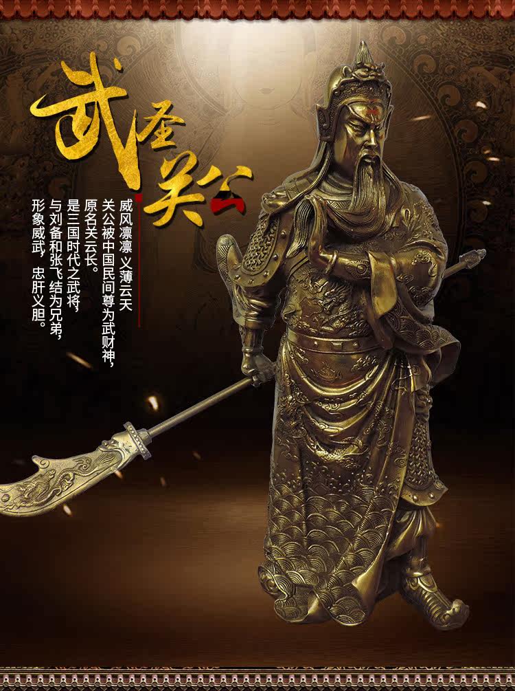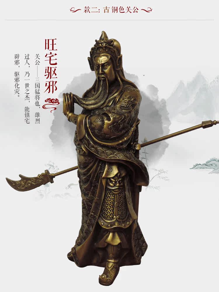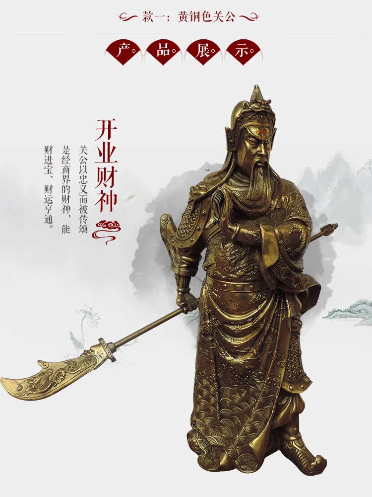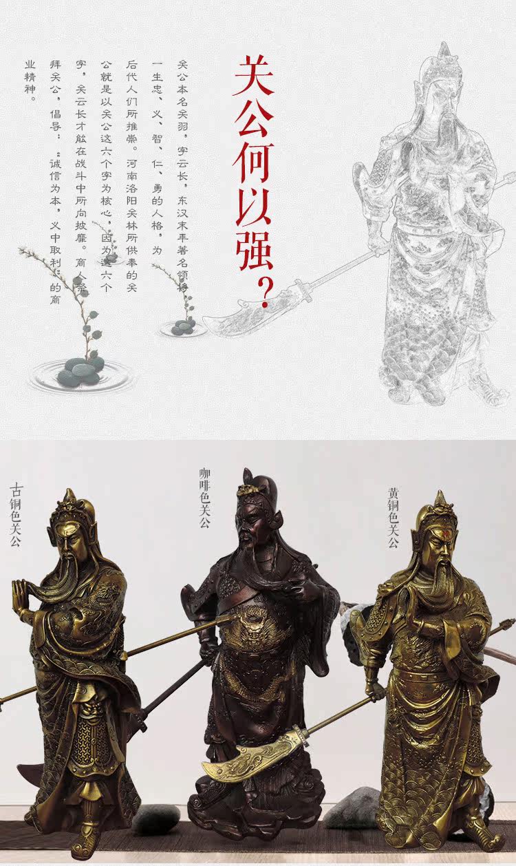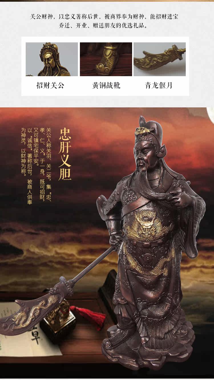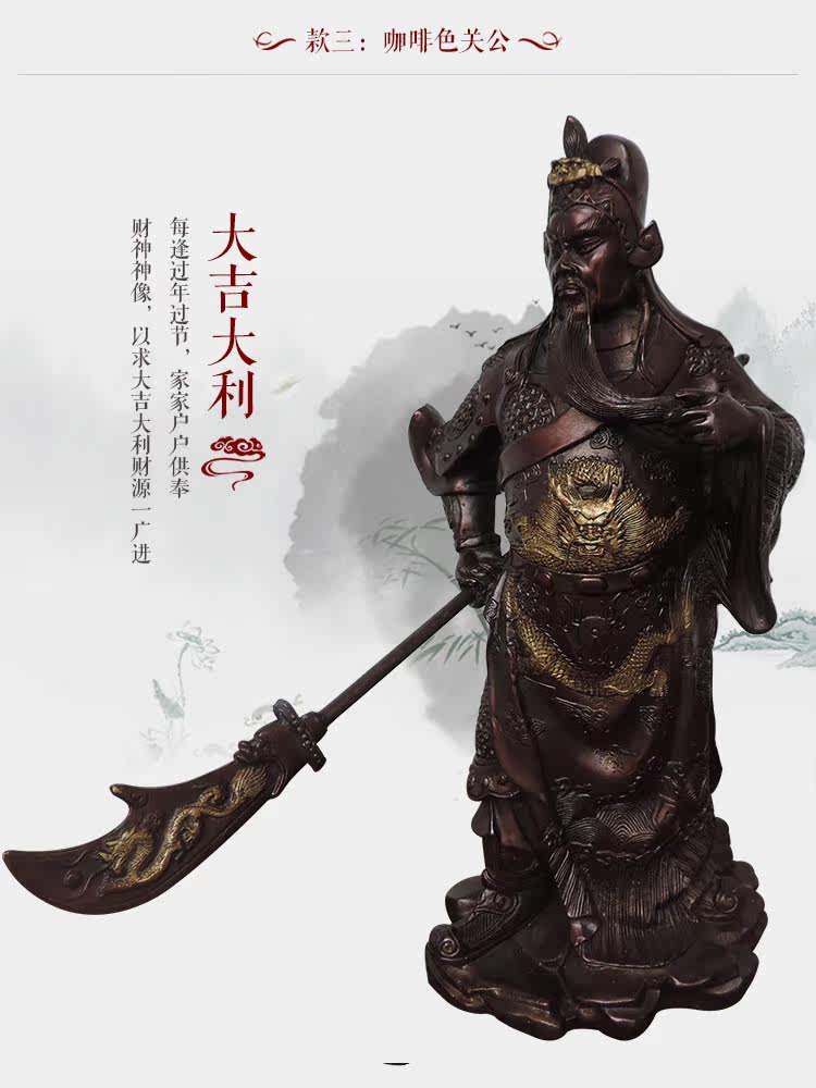 款一:銅色關公開光純銅關公武財神爺銅像風水招財擺件 關羽關二爺開業禮品