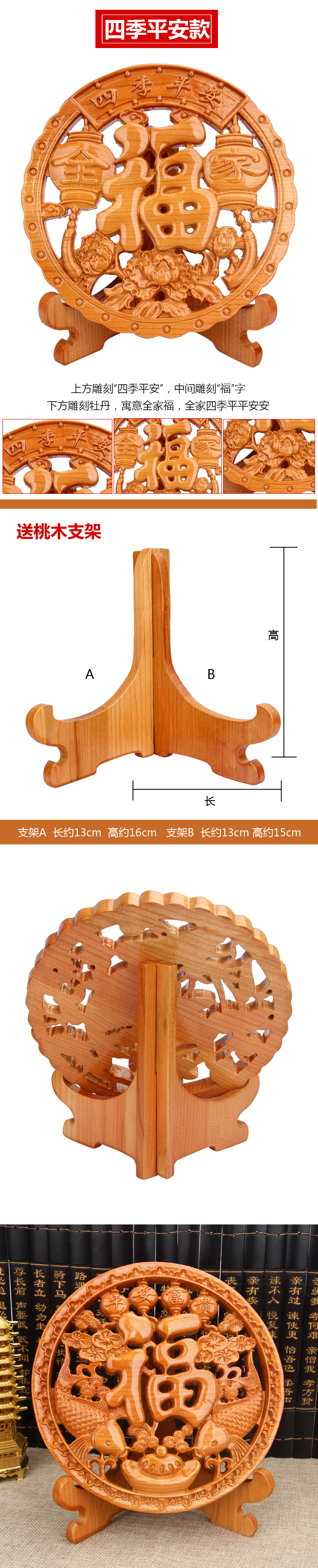 連年有余大號桃木擺件興旺 肥城天然桃木福字擺件福運連連 平安富貴 四季平安木雕雕刻