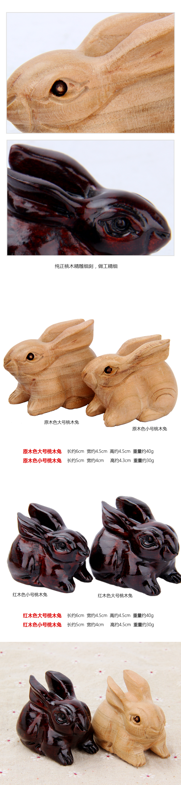 紅木色大號桃木兔桃木木雕小兔立體雕刻木質兔如意小兔玉兔擺件生肖兔木雕掛件兔子