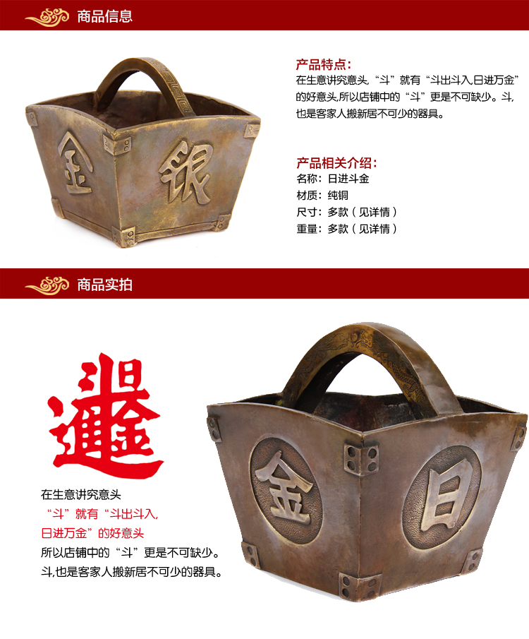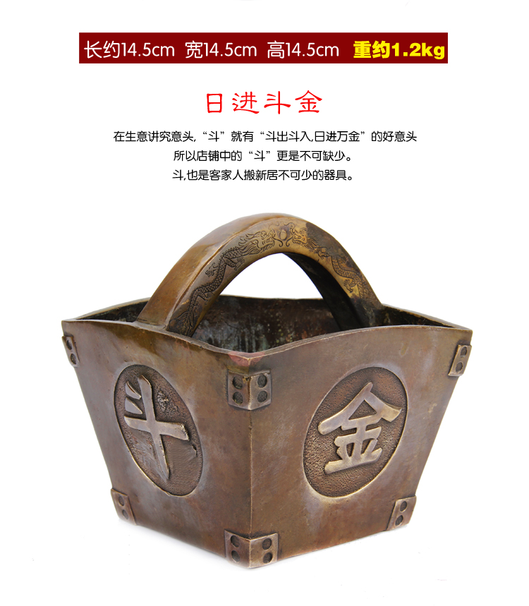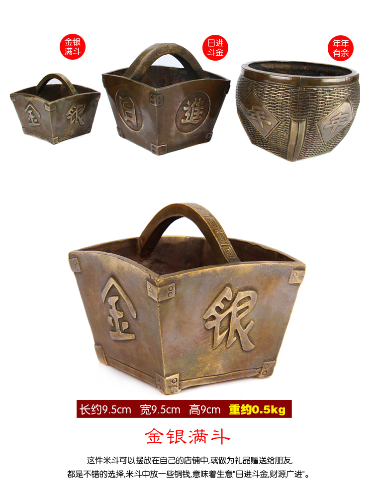 金銀滿斗中號:高9長9厘米開光日進斗金風水純銅招財金銀斗年年有余擺件仿古聚寶盆催財