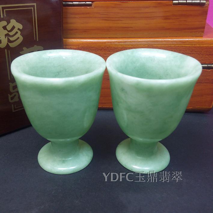 兩只酒杯天然翠高腳酒杯翡翠色酒杯葡萄酒杯 翡翠A貨玉石酒杯擺件