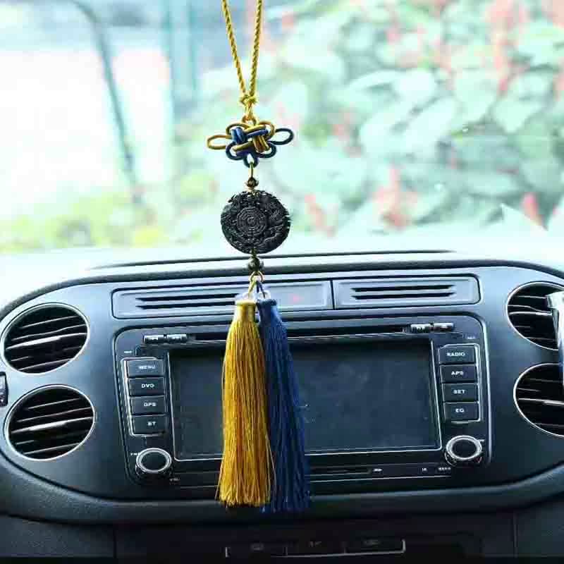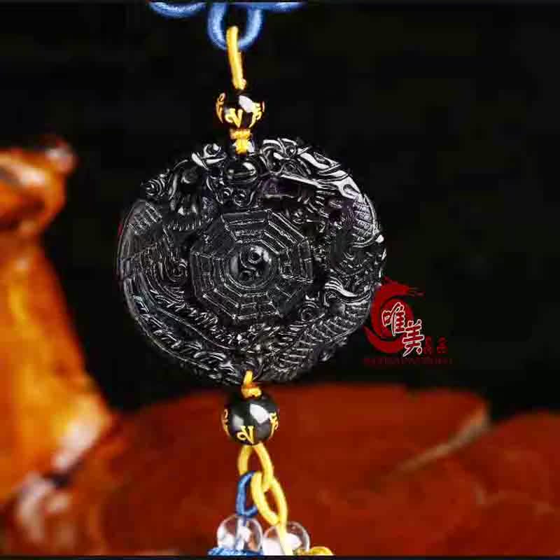 汽車掛件龍鳳八卦葫蘆黑曜石高檔男女汽車掛飾品出入保平安符車載