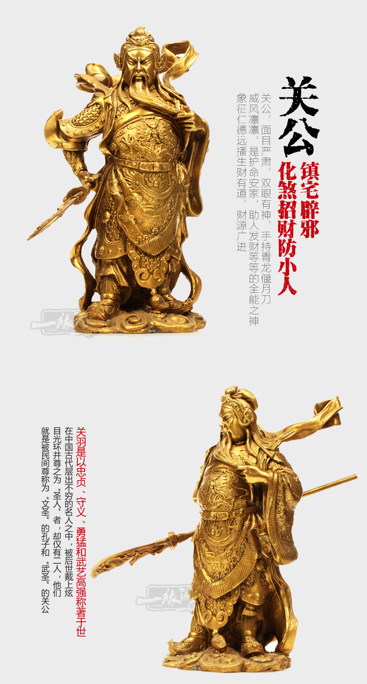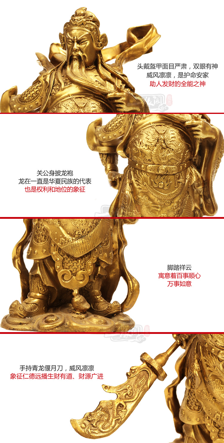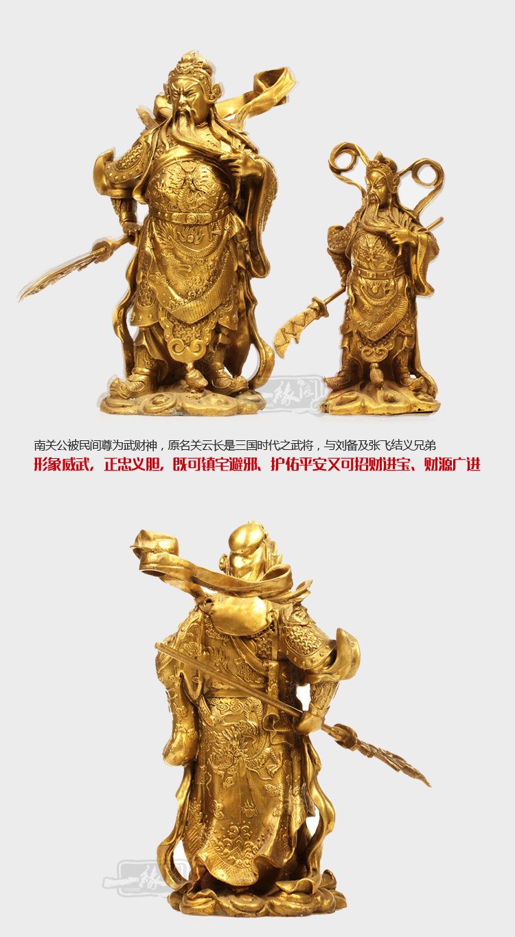 南關公被民間尊為武財神,原名關云長,是三國時代之武將,與劉備及張飛結義兄弟,形象威武,正忠義膽,既可鎮宅避邪、護佑平安,又可招財進寶、財源廣進。擺放在五鬼位,電視機,玻璃窗,鏡子等,后背要靠墻的位置,每天早上三柱香即可,可用果盤作為貢品。 財神的擺放: 1.文財神應放在近門處之左右二方位置,不論是福祿壽三星抑或財帛星君必須面對自己屋內,方能財源廣進。反之面對大門,自會送財出屋外,小心為要。 2.武財神如關公或趙公明,必須面對大門屋外,既可招財,又可鎮宅保平安,當可平安是福,財源廣進。 |