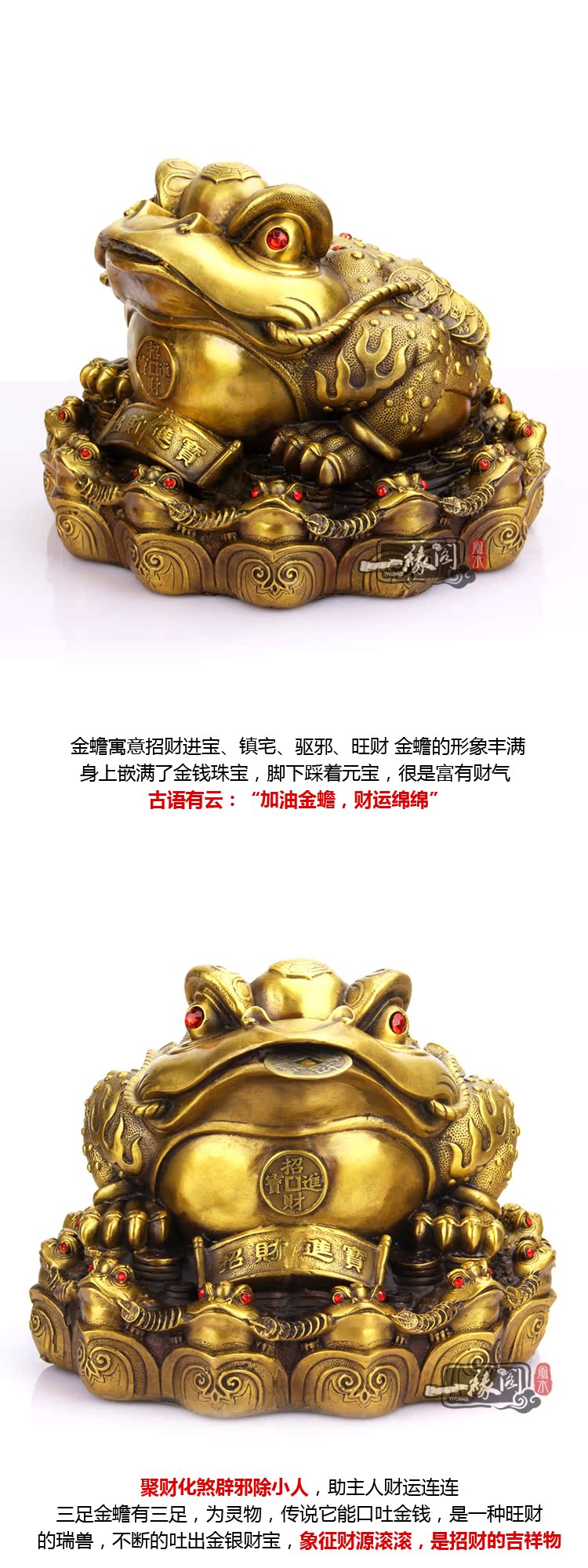 中號金蟾 高19cm純銅金蟾招財擺件 銅開光大號三足金蟾三腳金蟾特大開業