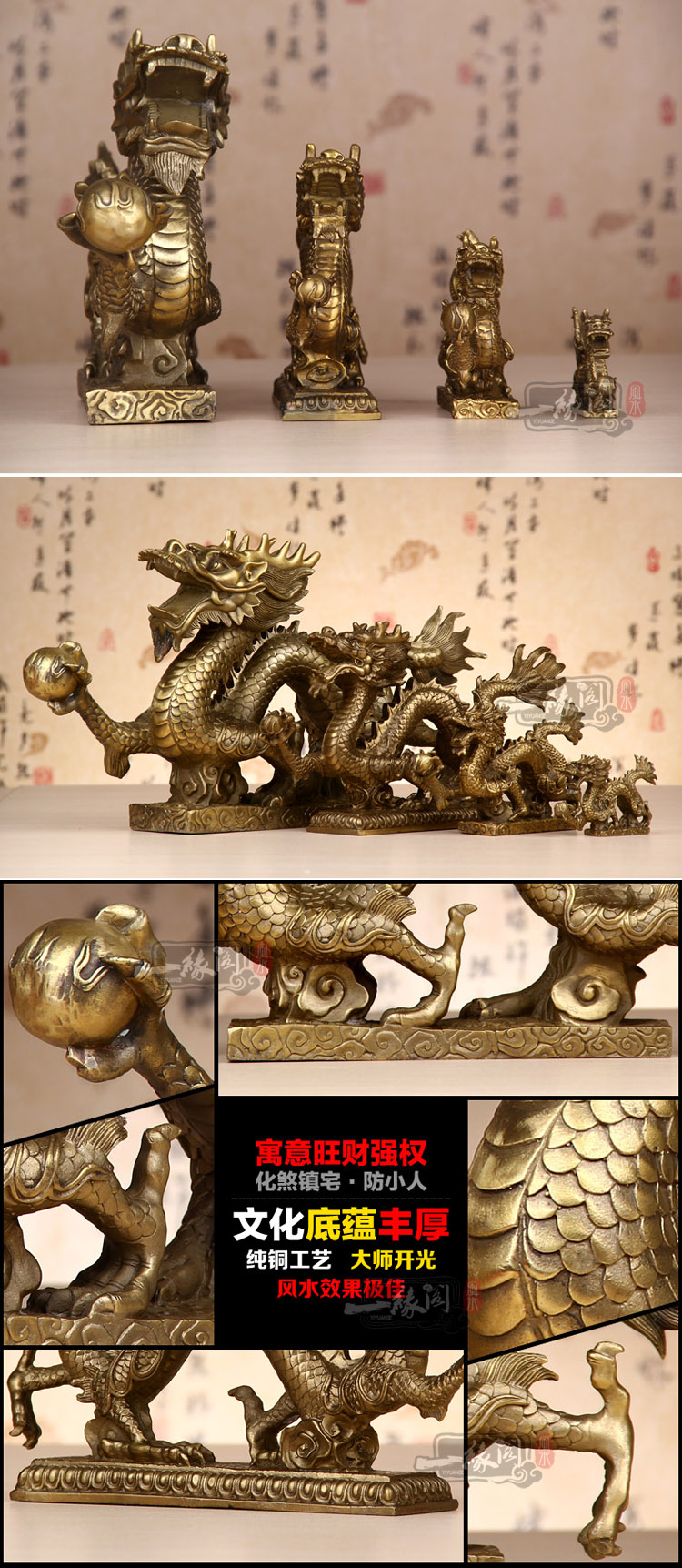 本公司大部分商品6一10天到貨。不接急單。急單的客戶請不要下單。感謝諒解與合作! ![]() 銅龍不僅可以放在缺角方補足宅氣, 還可以放在你的青龍方, 青龍主人丁,放在青龍方,可以使家宅人丁興旺,特別是男丁,事業有成. 放在青龍方還可以催起人緣,提升人氣. 有的人說壓小人,其實指的就是催起人緣. 左青龍,右白虎,前朱雀,后玄武,中間戊己勾陳土,意思是當你面朝前方,左手是青龍方,你的右手是白虎方,前面是朱雀方,背后是玄武方, 例如在家宅,面朝朝向外,你的左手就是青龍方.金龍就要放在靠左的墻上, 例如你坐在辦公桌,金龍則要放在你的左手方. 金龍的前面最好放一小碗水,因為龍是離不開水的,龍頭要朝外,和自己的眼睛朝外看,意為,龍游千里,飛黃騰達. 所以在很多催官的布局中,除了催財,催動,還要催人緣. ![]() ![]() ![]() 產品介紹: 龍為古時四靈獸之首,龍代表權威之外還代表富貴吉祥的象徵,藉此增加祥瑞之氣及可加強權力之發揮。 龍在風水學上有生旺及制煞之效,有利於壓小人、化兇災,適合行政人員、政界人物或高職位人士使用,利於增加權威。 在現代風水學上,龍是用來除小人,生旺化煞,吸財氣的。宅的“青龍”方放一條龍便能夠起到除小人免是非的作用;如果家宅的白虎方位煞氣太重,亦適宜在青龍方位擺放瑞龍,以化解白虎傷人之害。在家宅或,公司中擺放龍雕,能增加祥瑞之氣——招財、添貴人、化煞、旺財。 風水作用和使用方法主: 1.在易犯小人之情形時,可以在辦公桌左邊,安置吉龍,以鎮小人。 7.生肖猴、生肖鼠、生肖龍申子辰,三生肖為三合局。借助三合生肖的星象排列,可以助增自己的運氣。尤其是犯太歲之際擺放三合局尤為有效。 一緣閣會隨緣,感覺哪個寶貝特別愿意去你那里,就會給你發哪個 |