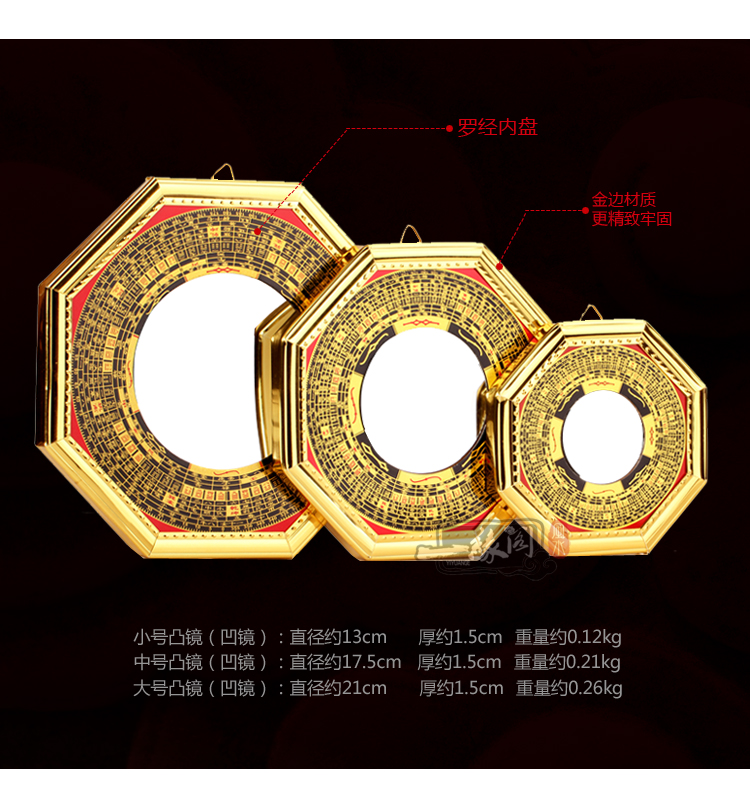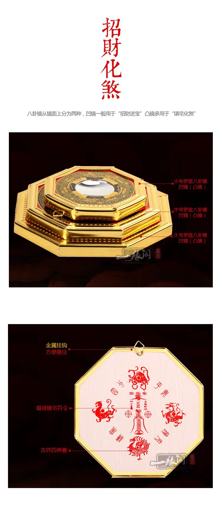 中號17.5cm羅經(凸鏡)開光合金羅經八卦鏡鎮宅辟邪化煞凸鏡凹鏡風水鏡用品居家招財擺件