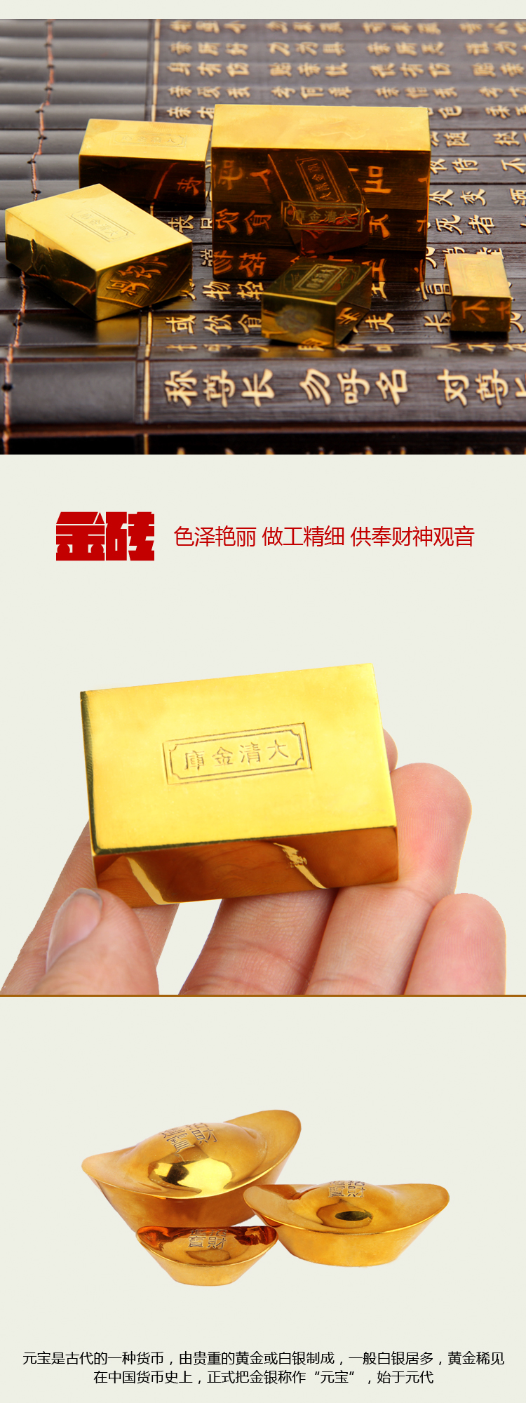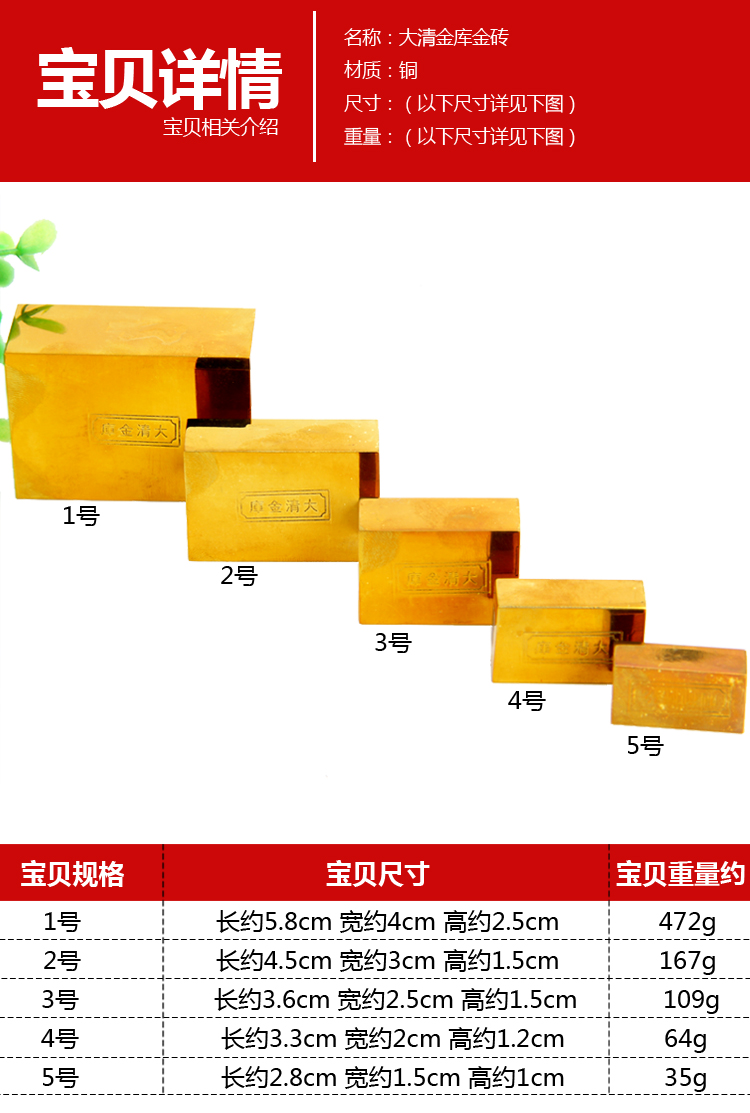 大清金庫金條3號純黃銅銅金寶擺件實心純銅金磚實心銅金條實心 招財進寶銅