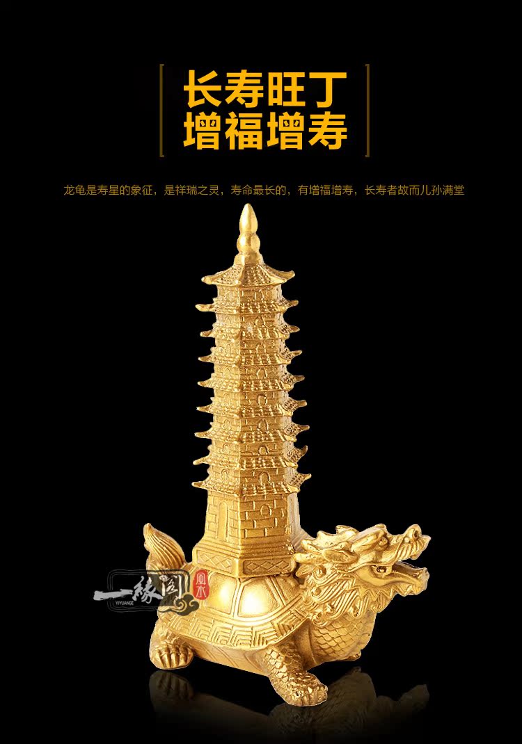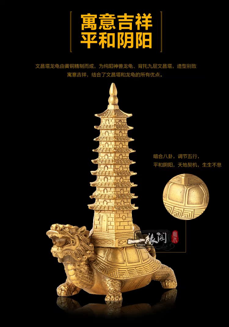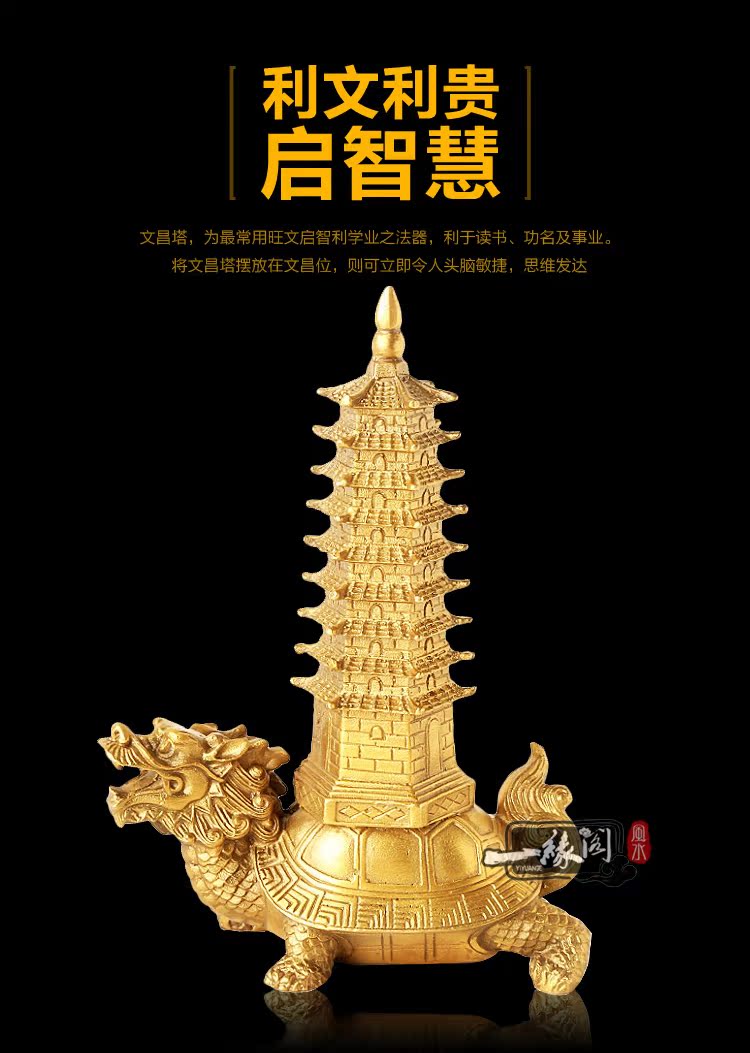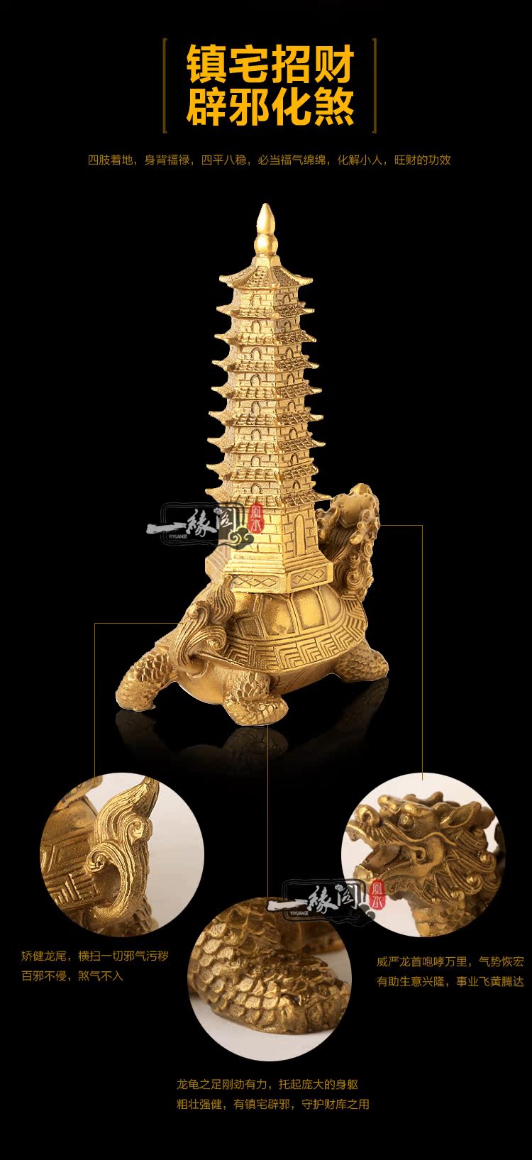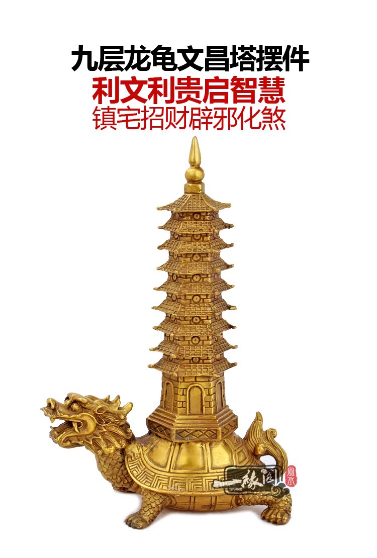 大號 高約26cm一緣閣 開光純銅九層龍龜文昌塔擺件助學業助事業家居飾品工藝品