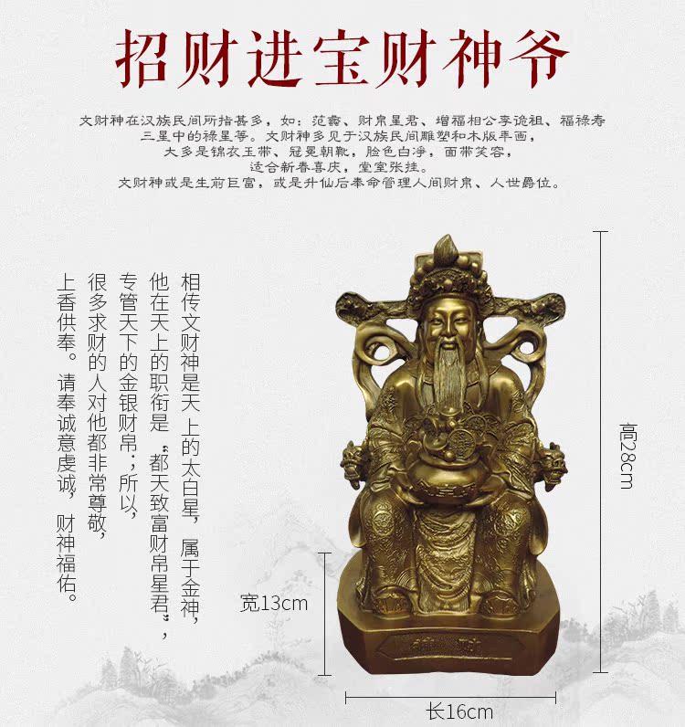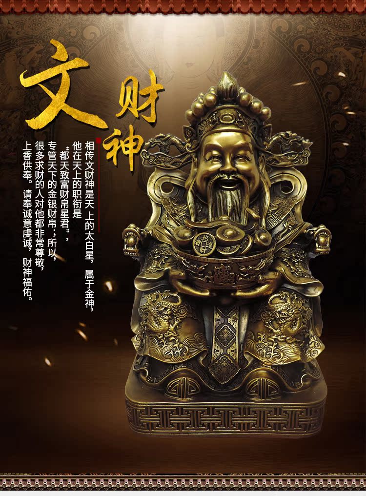 B款:純銅文財神純銅文財神爺佛像擺件大號開光招財風水公司擺設開業禮品