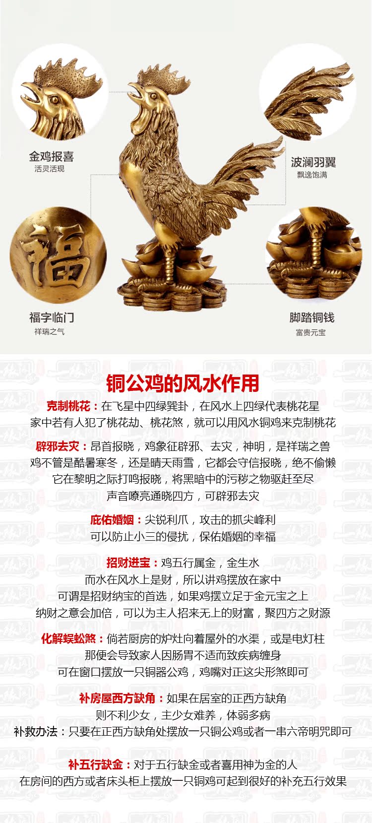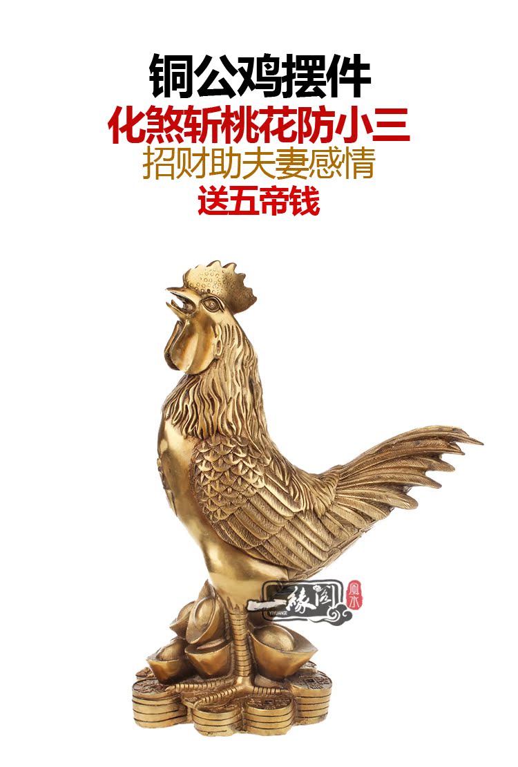 1號 高約6cm一緣閣 開光純銅雞工藝品 銅公雞擺件風水生肖雞 防婚外情防小三