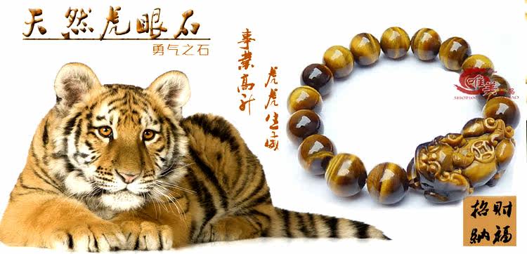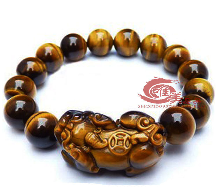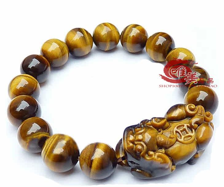 16mm開光天然黃虎眼睛石貔貅手鏈辟邪招財男女水晶手串情侶佛珠飾品