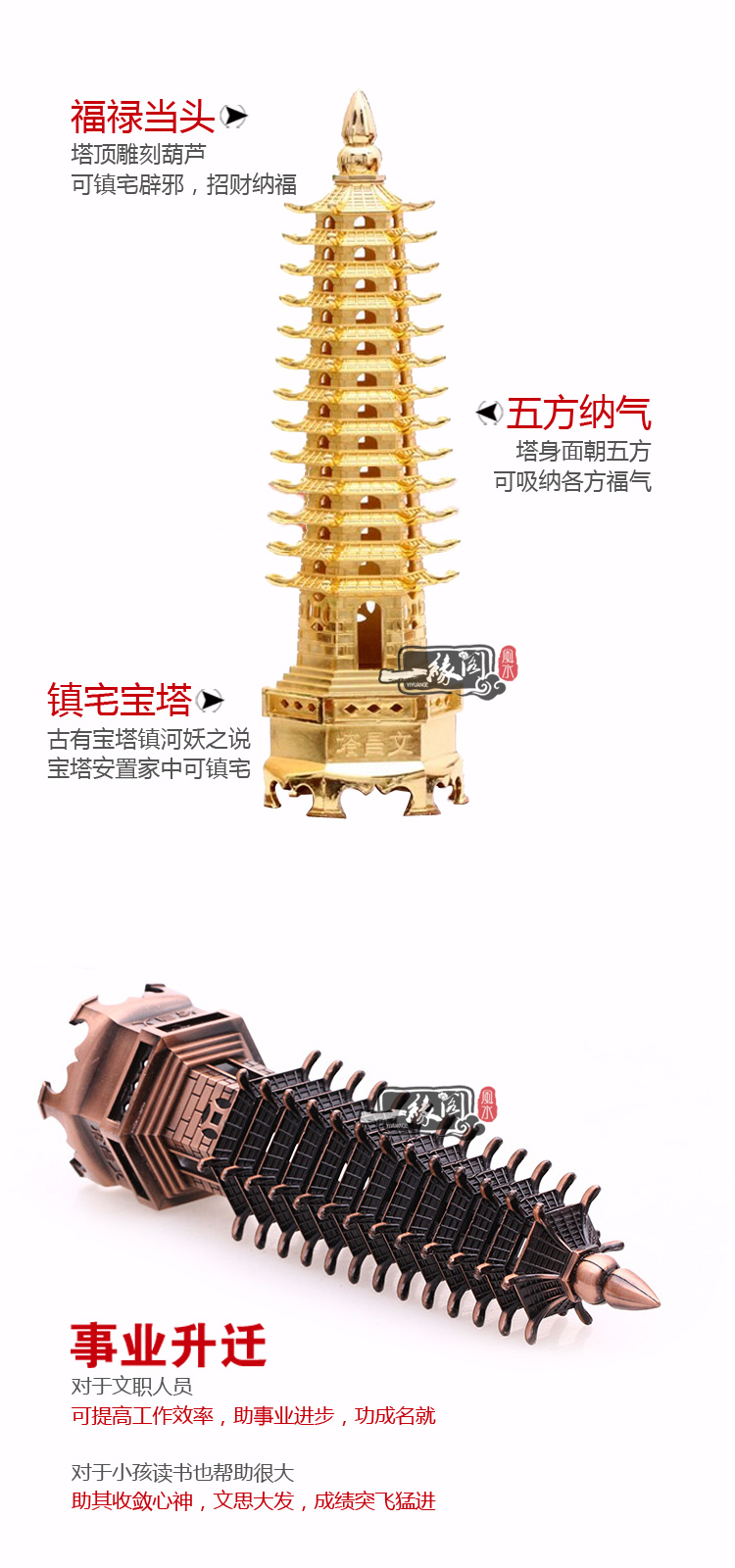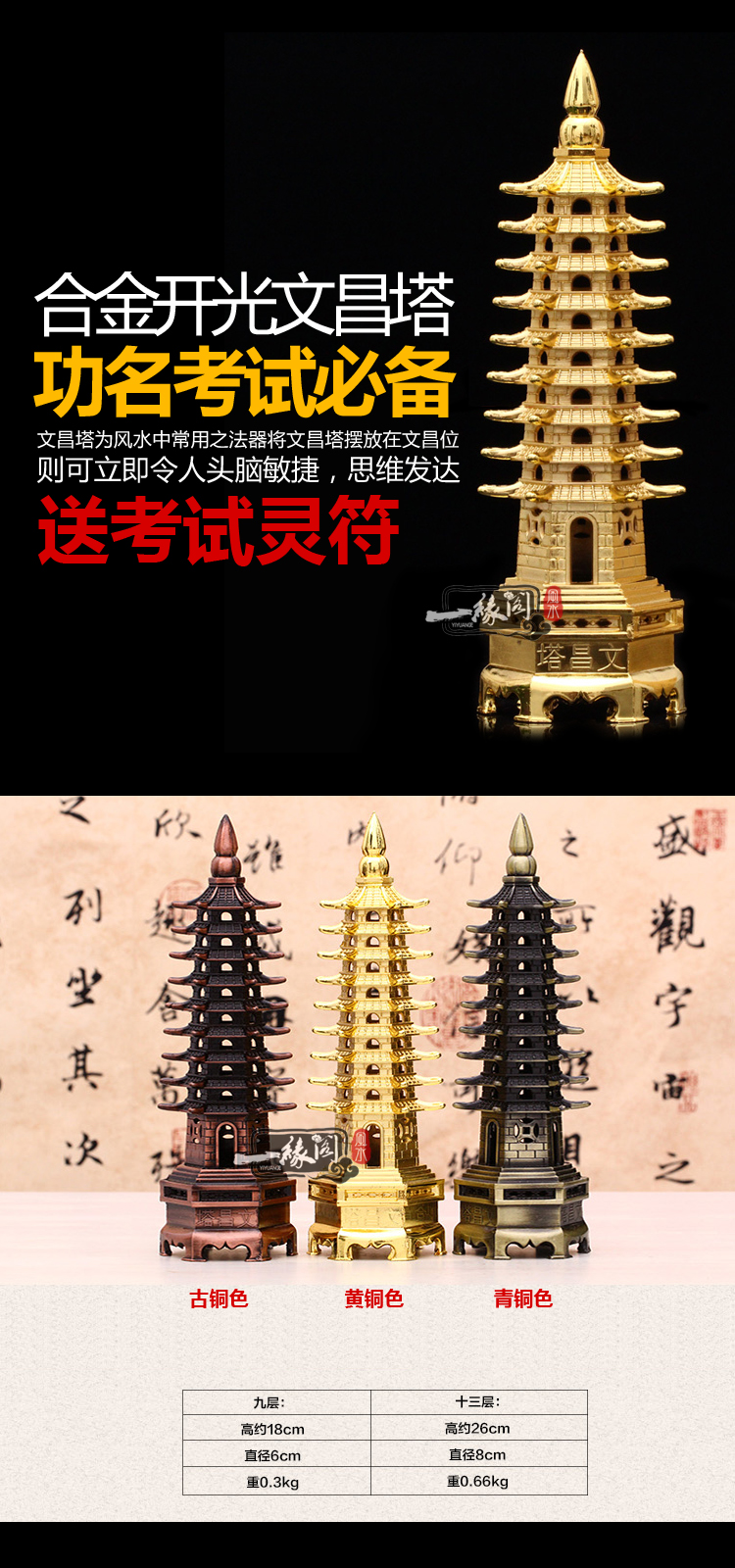 13層文昌塔青銅色 高26cm一緣閣開光銅合金文昌塔13層9層擺件助學業十三層九層工藝品