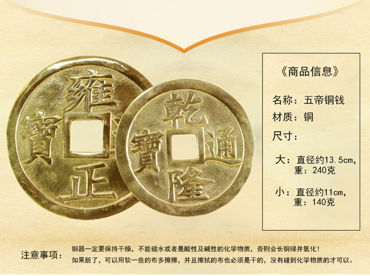 11cm 嘉慶銅錢大號風水五帝錢 清代五帝錢擺件 收藏送禮 實用物件掛件擺件