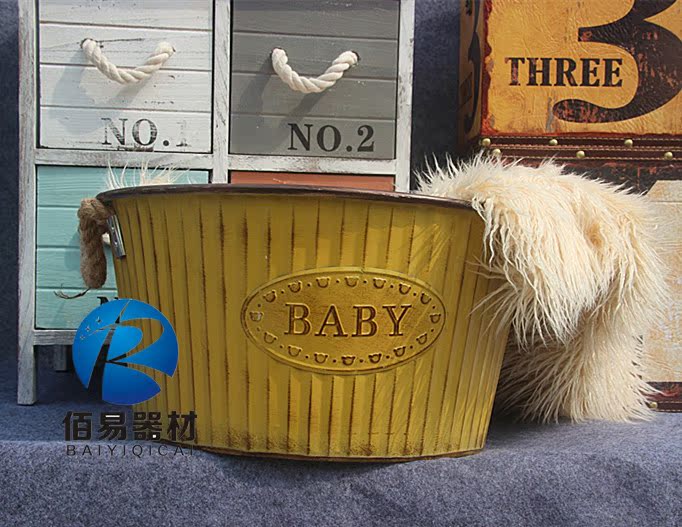 外觀造型: 寶寶桶顏色分類: 做舊 黃色 做舊 藍色材質: 鐵適用空間: 兒童攝影基地風格: 復古懷舊功能: 裝飾拍照擺件類型: 落地擺件