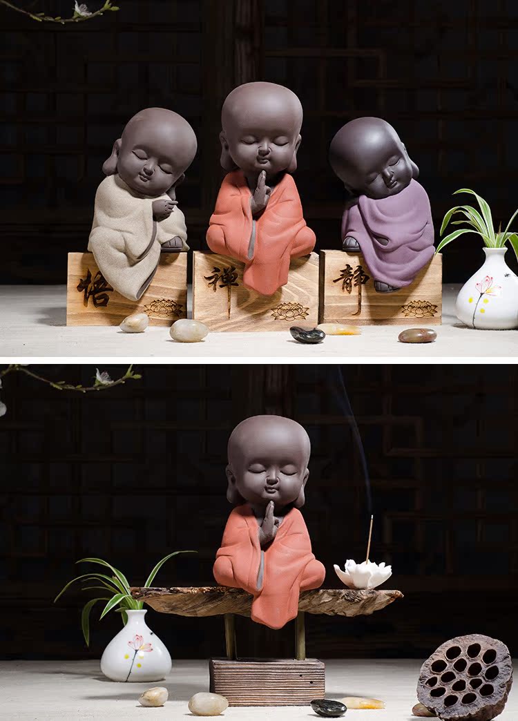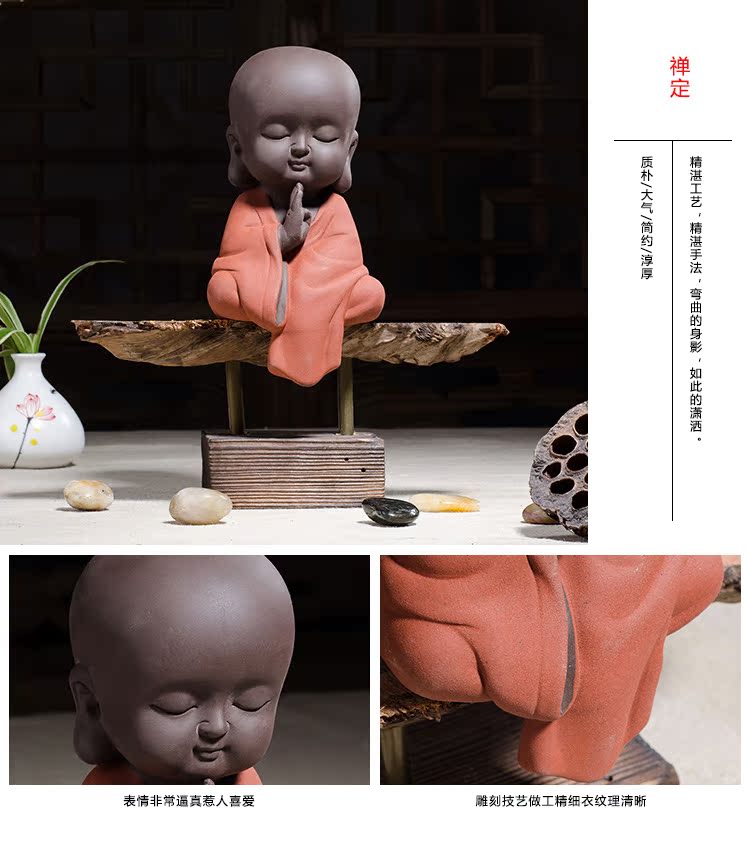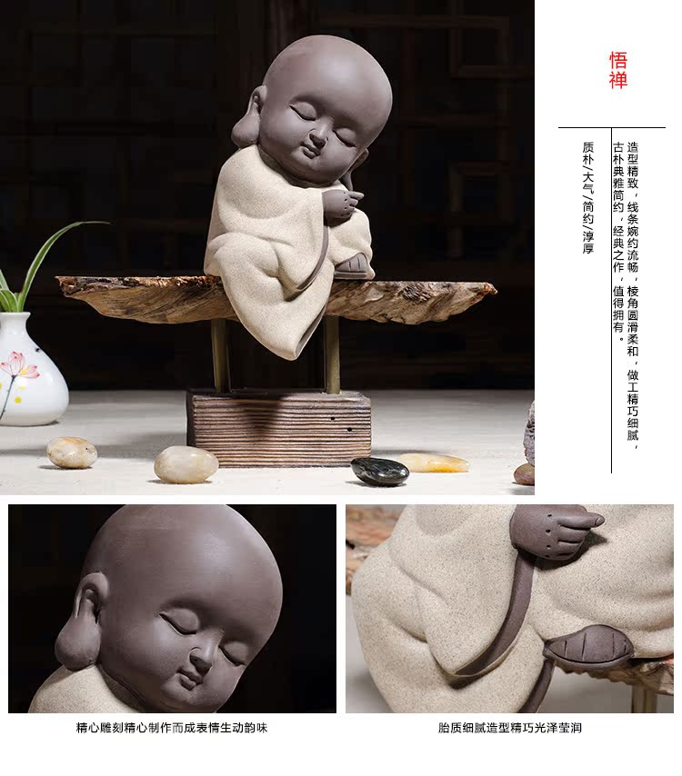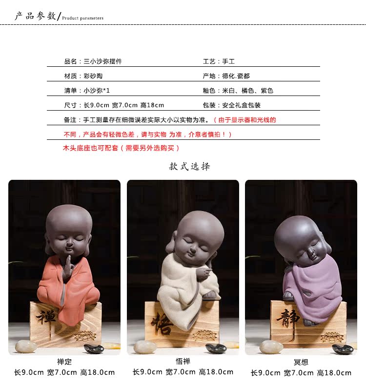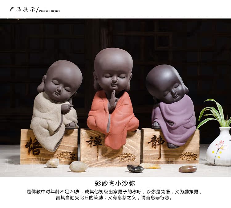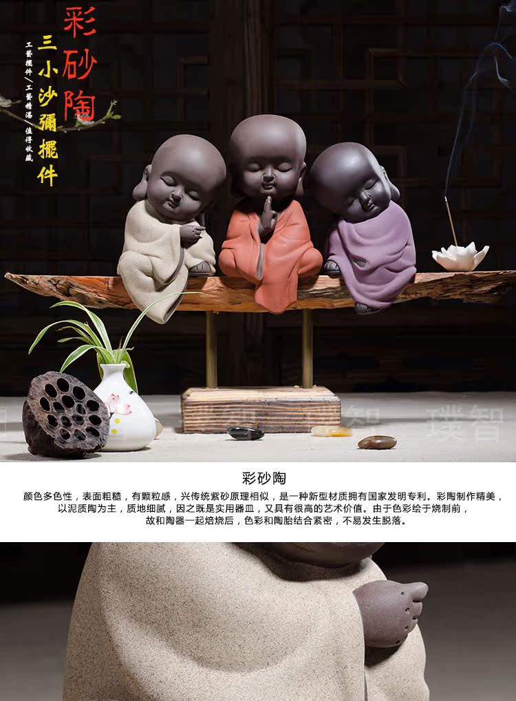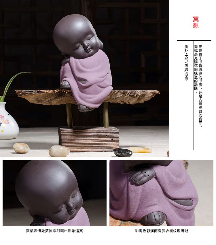禪定(不含底座)彩砂陶小沙彌家居電視柜書房裝飾工藝品擺件陶瓷小佛像小和尚禮物