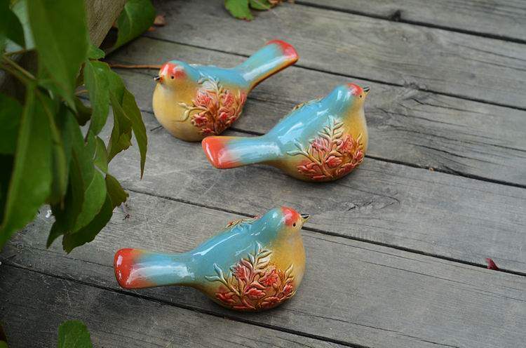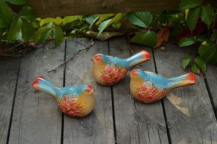 歐式田園窯變浮雕花紋小鳥 陶瓷工藝品擺件-042