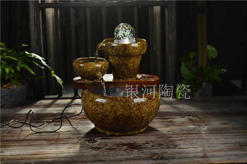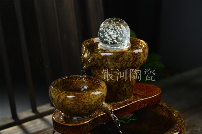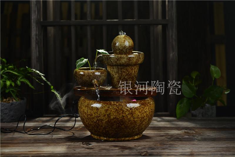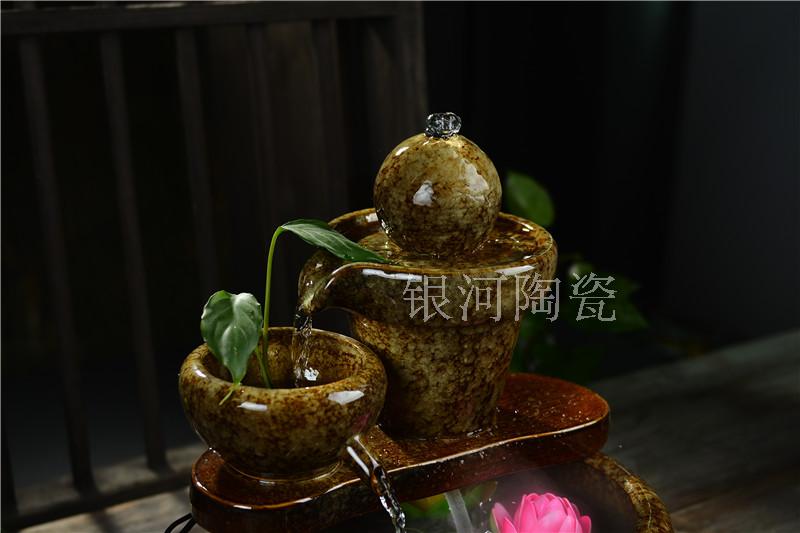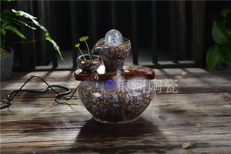 | 本公司大部分商品6一10天到貨。不接急單。急單的客戶請不要下單。感謝諒解與合作! 凡在購買任何一款流水器,即送霧化器荷花紅包購后紅包精美陶瓷禮品一份。無需擔心快遞運輸破損問題,如有意外損壞,也由全部負責,并即時補發。 【名稱】高山流水風水球風水輪流水器 【材質】陶瓷 【產地】瓷都—德化 【包裝】普通包裝 奇特的噴水變幻過程中,產生的大量負氧離子,粉塵結合,將其吸附于水中沉淀,能有效驅除二手煙、甲醛、一氧化碳,水中滴入植物,將會室生香,有養神、美顏保健的功效。濕潤的空氣能使人保持生機盎然,避免皮膚干燥、眼睛干澀。能舒緩神經緊張,消除疲勞,保持容光煥發。同時也起到很高的觀賞裝飾作用和實用價值。特別是空調房間和干燥氣候尤其適用!獨特的產品,回歸大自然的境象,讓人有一種處于世外桃源的感覺,還有一股潺潺流水聲,更為你的家居擺設增添了一份生機。陶瓷噴泉是少有的能把觀賞性和實用性相結合的陶瓷工藝品,是單位開業、親友喬遷、新居落成之饋贈佳品。同時適用于辦公室、大廳等公共場所的空氣凈化作用。 使用范圍:開業慶典,展廳擺件店面裝飾花園擺件房地產別墅擺件酒店大堂客廳裝飾品園林假山池塘擺件 溫馨提示:本產品不包括加濕霧化器,如需要需另拍