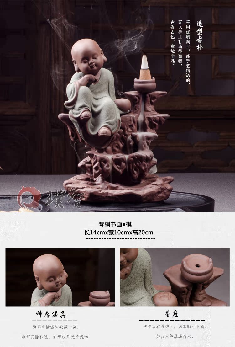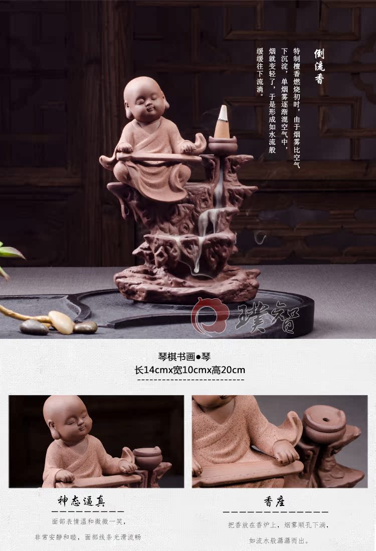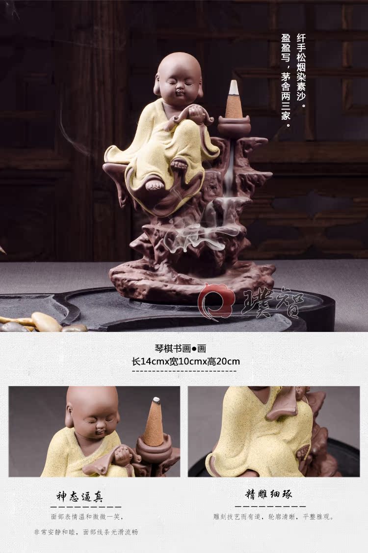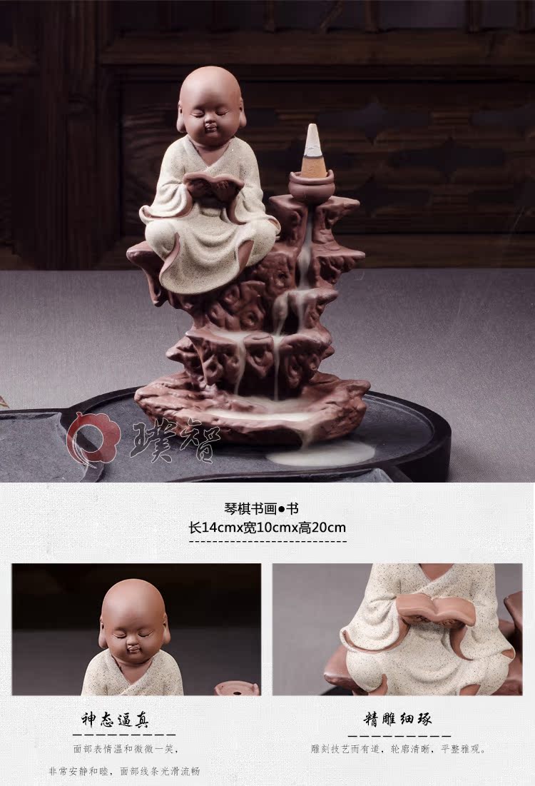 琴款紫砂倒流香爐創意擺件小沙彌家居裝飾工藝品茶道配飾香道禮品