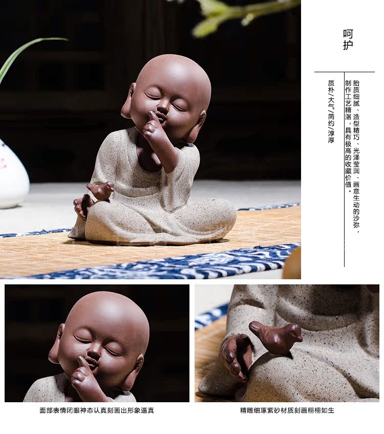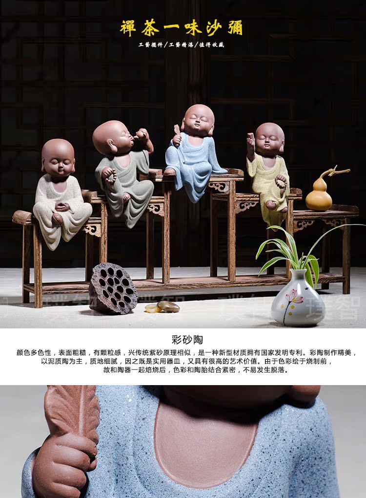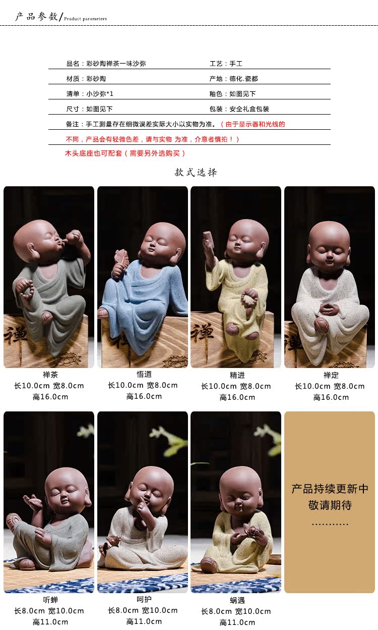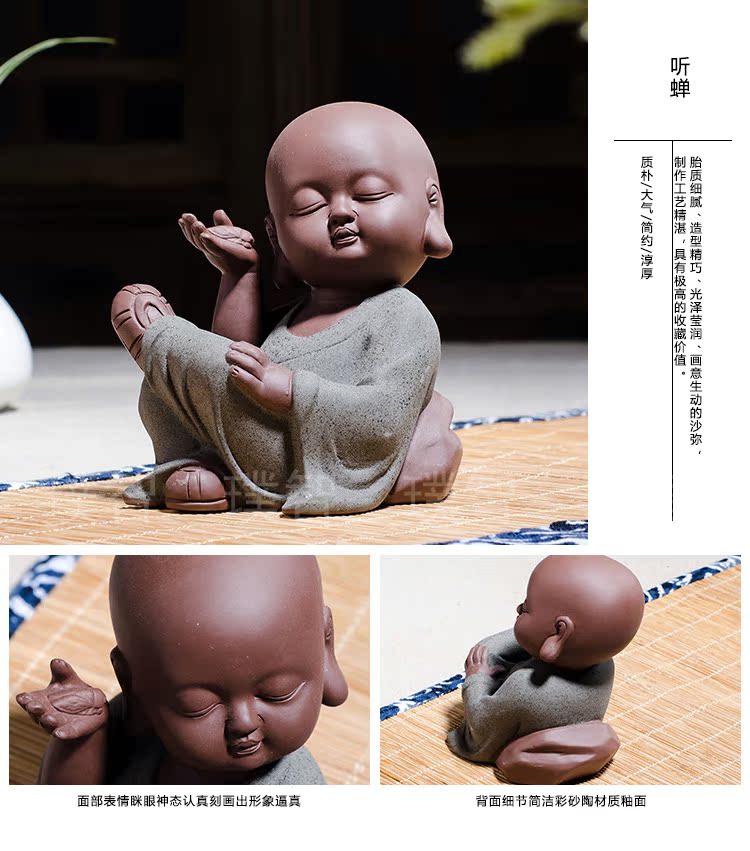 款式四紫砂佛像小沙彌風化木座根雕家居客廳工藝品小和尚陶瓷擺件人物
