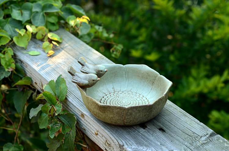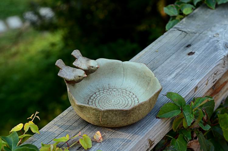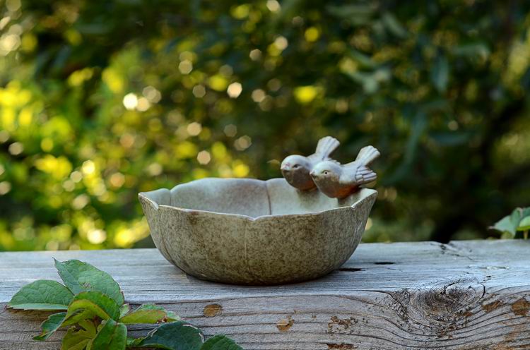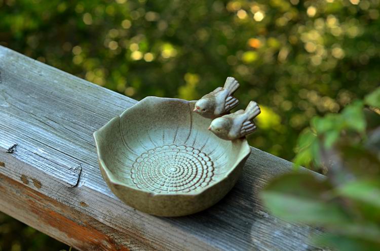 無孔【天天特價】陶瓷小鳥盆 創意家居果盤擺件喂鳥器收納 花園造景