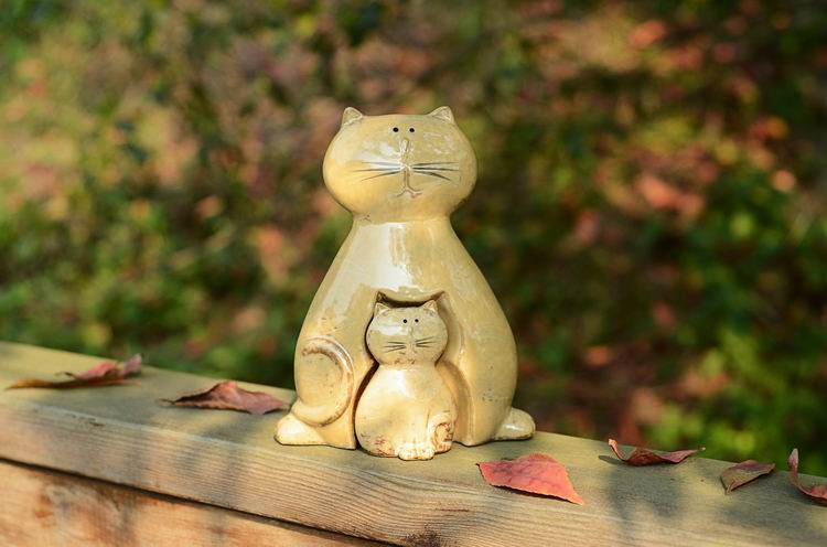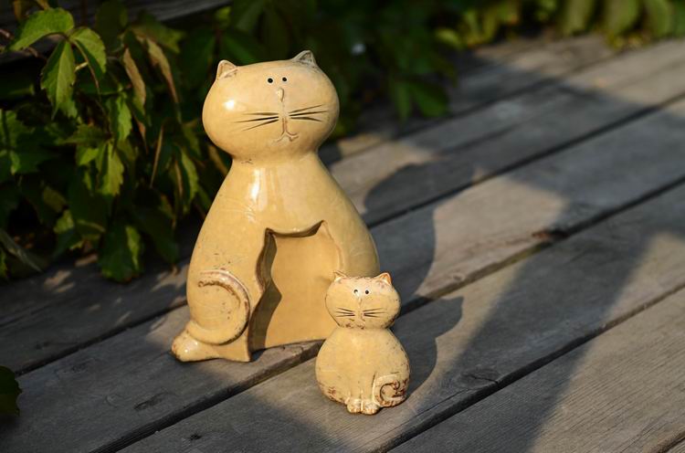 創意家居擺件 花園庭院動物工藝品擺設 窯變釉母子貓 A-048