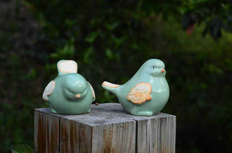 陶瓷工藝品*花園陽臺裝飾擺件*家居裝飾*藍色陶瓷小鳥 A-046