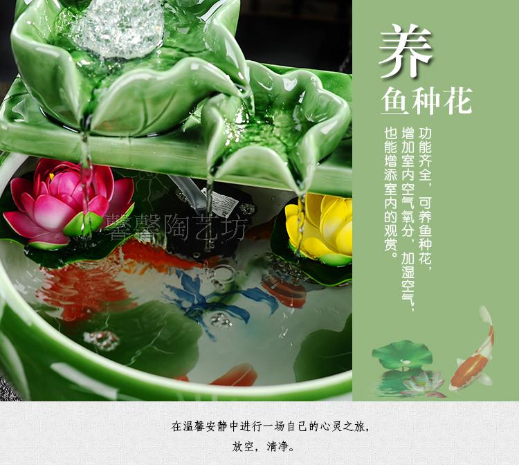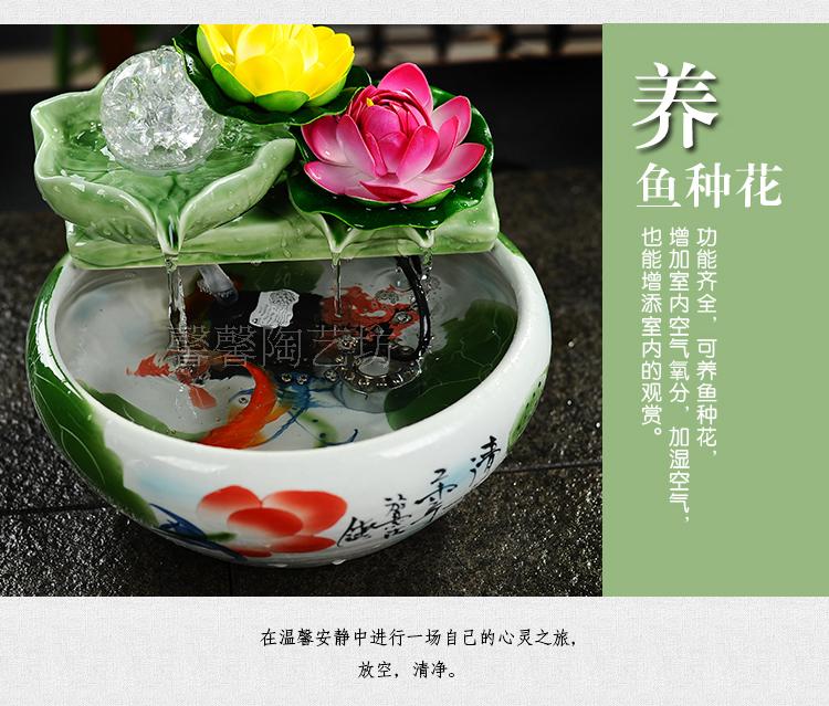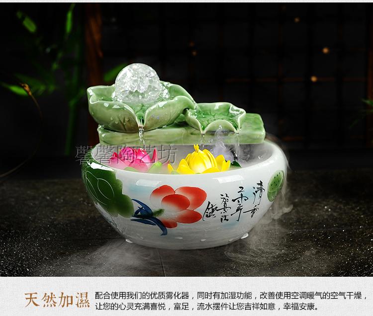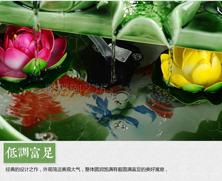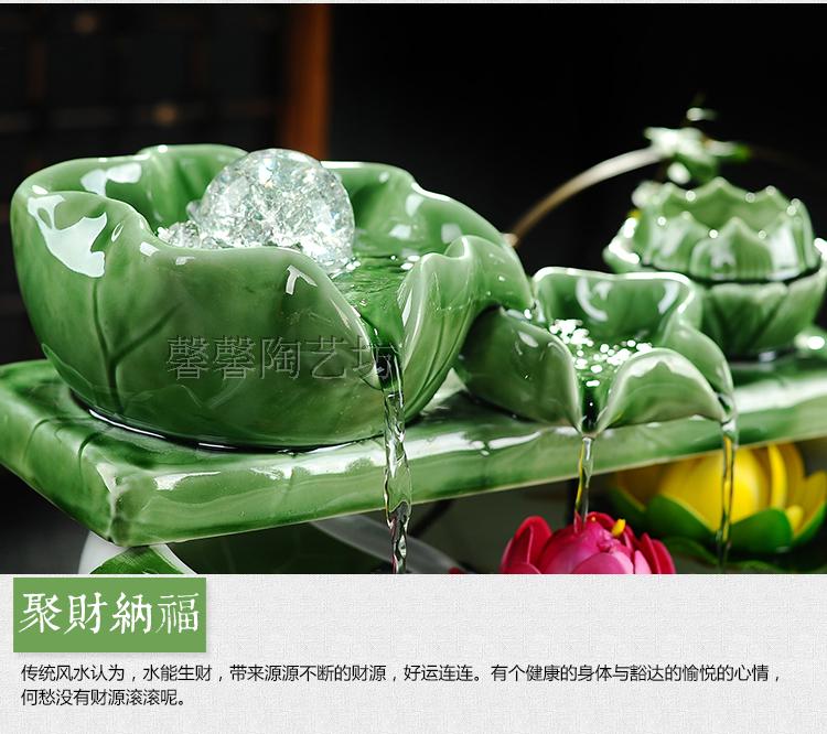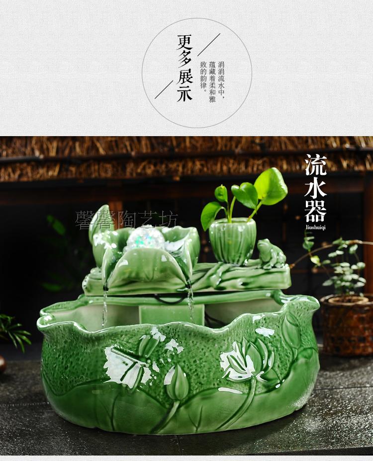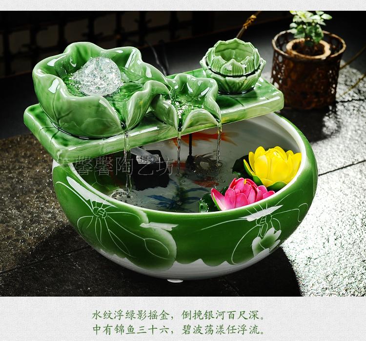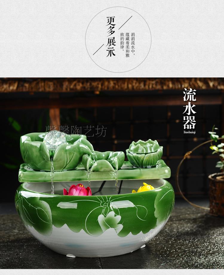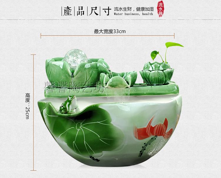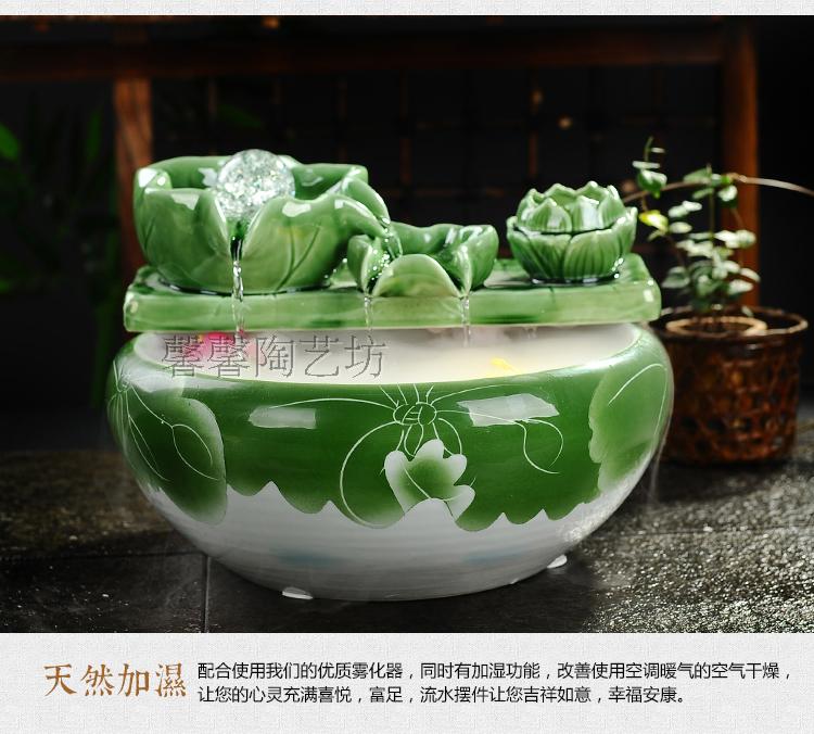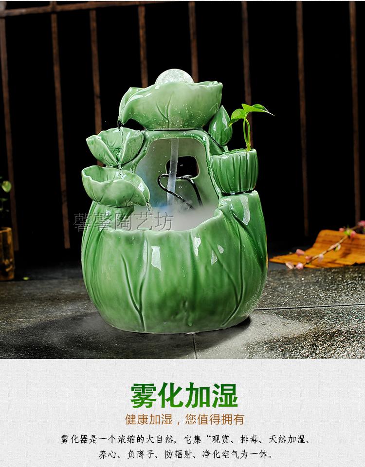 | 本公司大部分商品6一10天到貨。不接急單。急單的客戶請不要下單。感謝諒解與合作! 還免費贈送適量天然鵝卵石,如有需要請與客服聯系。 【名稱】清香流水器 【材質】陶瓷 【套裝】一個水泵 ,贈送兩朵荷花,不包含霧化器,如需霧化器需另拍, 【產地】瓷都—德化 【包裝】普通包裝 奇特的噴水變幻過程中,產生的大量負氧離子,粉塵結合,將其吸附于水中沉淀,能有效驅除二手煙、甲醛、一氧化碳,水中滴入植物,將會室生香,有養神、美顏保健的功效。濕潤的空氣能使人保持生機盎然,避免皮膚干燥、眼睛干澀。能舒緩神經緊張,消除疲勞,保持容光煥發。同時也起到很高的觀賞裝飾作用和實用價值。特別是空調房間和干燥氣候尤其適用!獨特的產品,回歸大自然的境象,讓人有一種處于世外桃源的感覺,還有一股潺潺流水聲,更為你的家居擺設增添了一份生機。陶瓷噴泉是少有的能把觀賞性和實用性相結合的陶瓷工藝品,是單位開業、親友喬遷、新居落成之饋贈佳品。同時適用于辦公室、大廳等公共場所的空氣凈化作用。 使用范圍:開業慶典,展廳擺件店面裝飾花園擺件房地產別墅擺件酒店大堂客廳裝飾品園林假山池塘擺件
