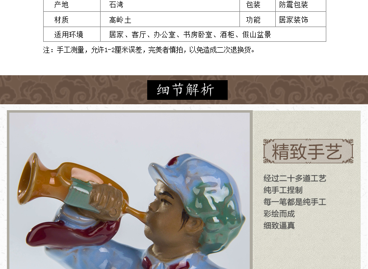 紅軍小號手石灣公仔家居客廳書房桌面人物擺件革命紅軍小紅軍冬子參軍小號手