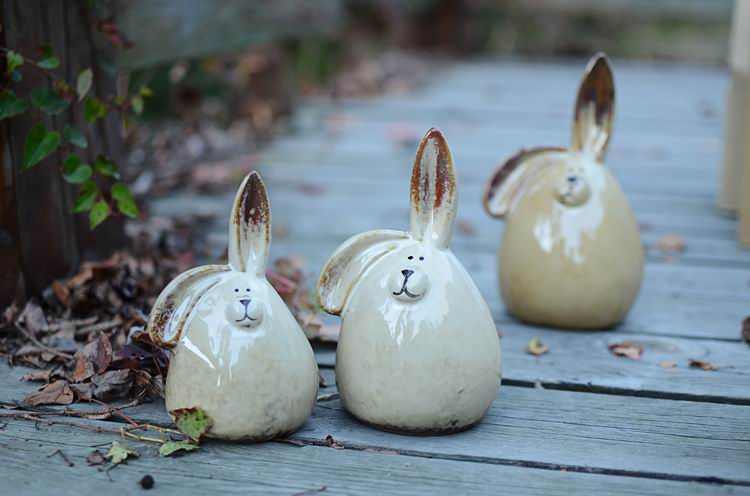 長耳朵兔子錢罐 小額批發陶瓷窯變釉 現代家居擺設花園裝飾 A-072