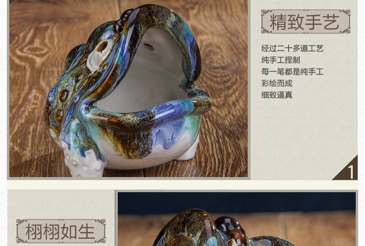 金蟾石灣陶瓷擺件招財金蟾陶瓷煙灰缸辦公室創意筆筒酒柜裝飾金蟾茶寵